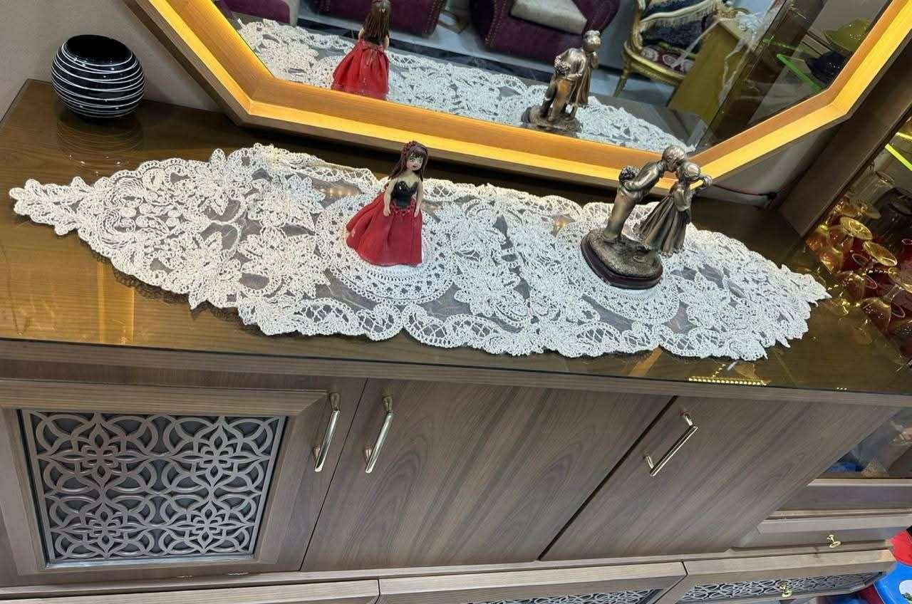 الرانر السفره أو تبريزه الشاشه مفرش سيلك تركي مدبلج عربي الصورة بتتكلم من الجمال ❤️❤️ متاح مربع / طقم تسريحه/ مستطيل للسفره او لتربيزة الشاشه كلهم حلوين اوي بجد خامه وفنش بفضل الله تحف