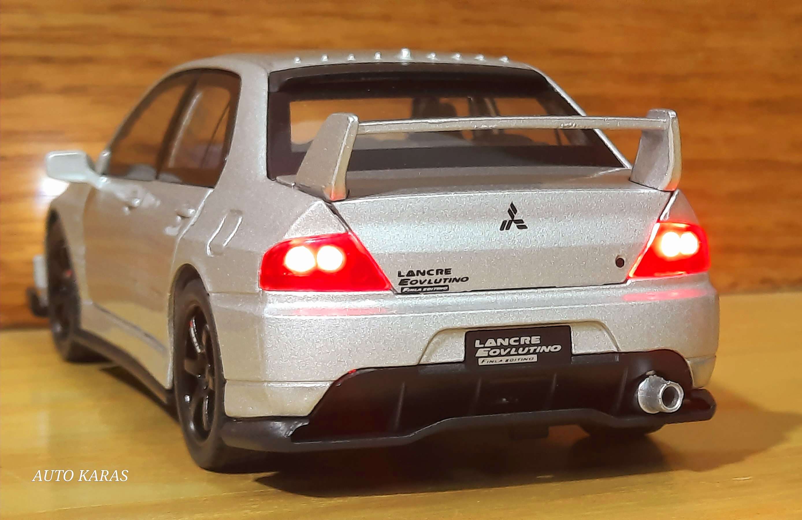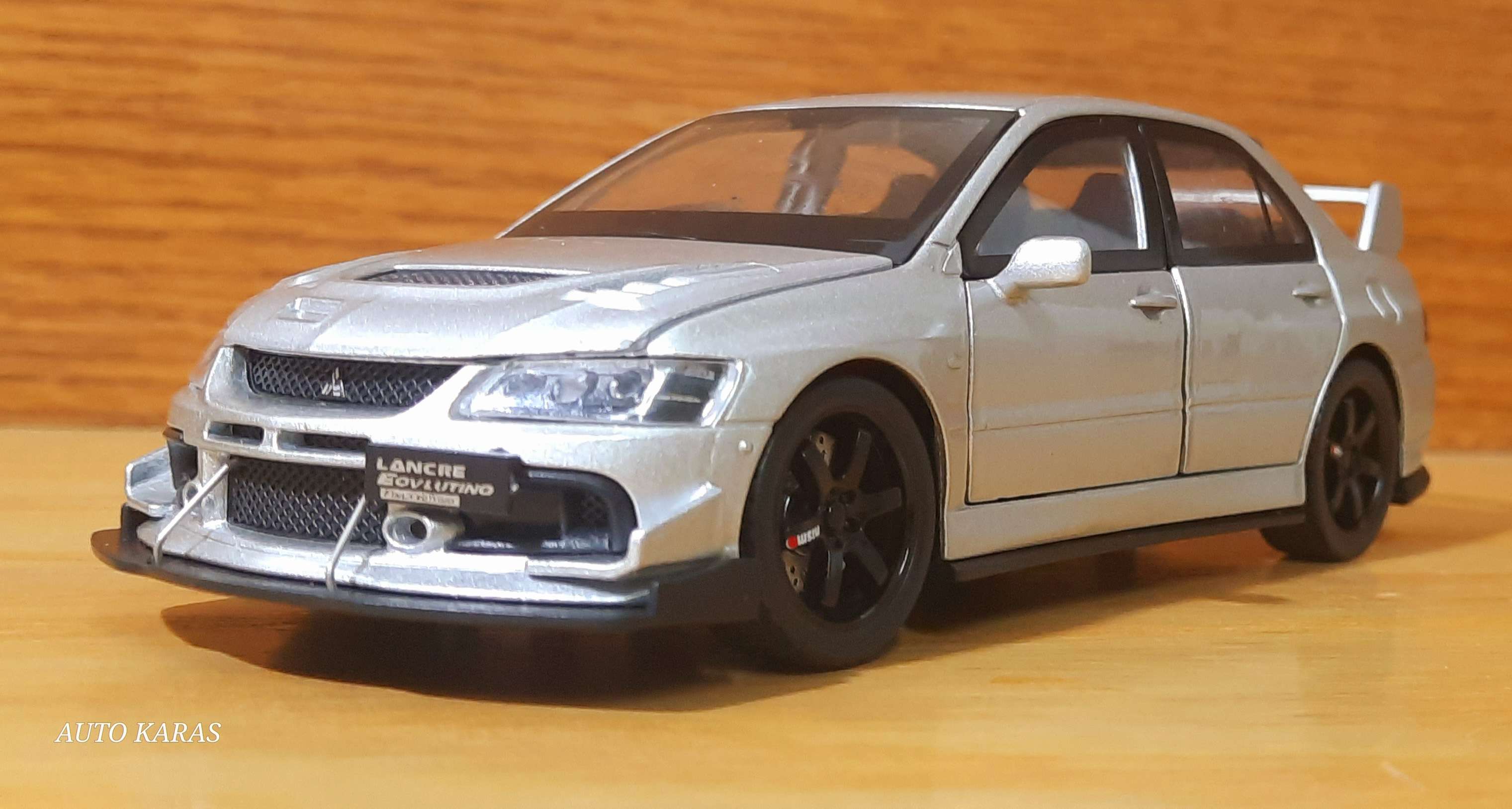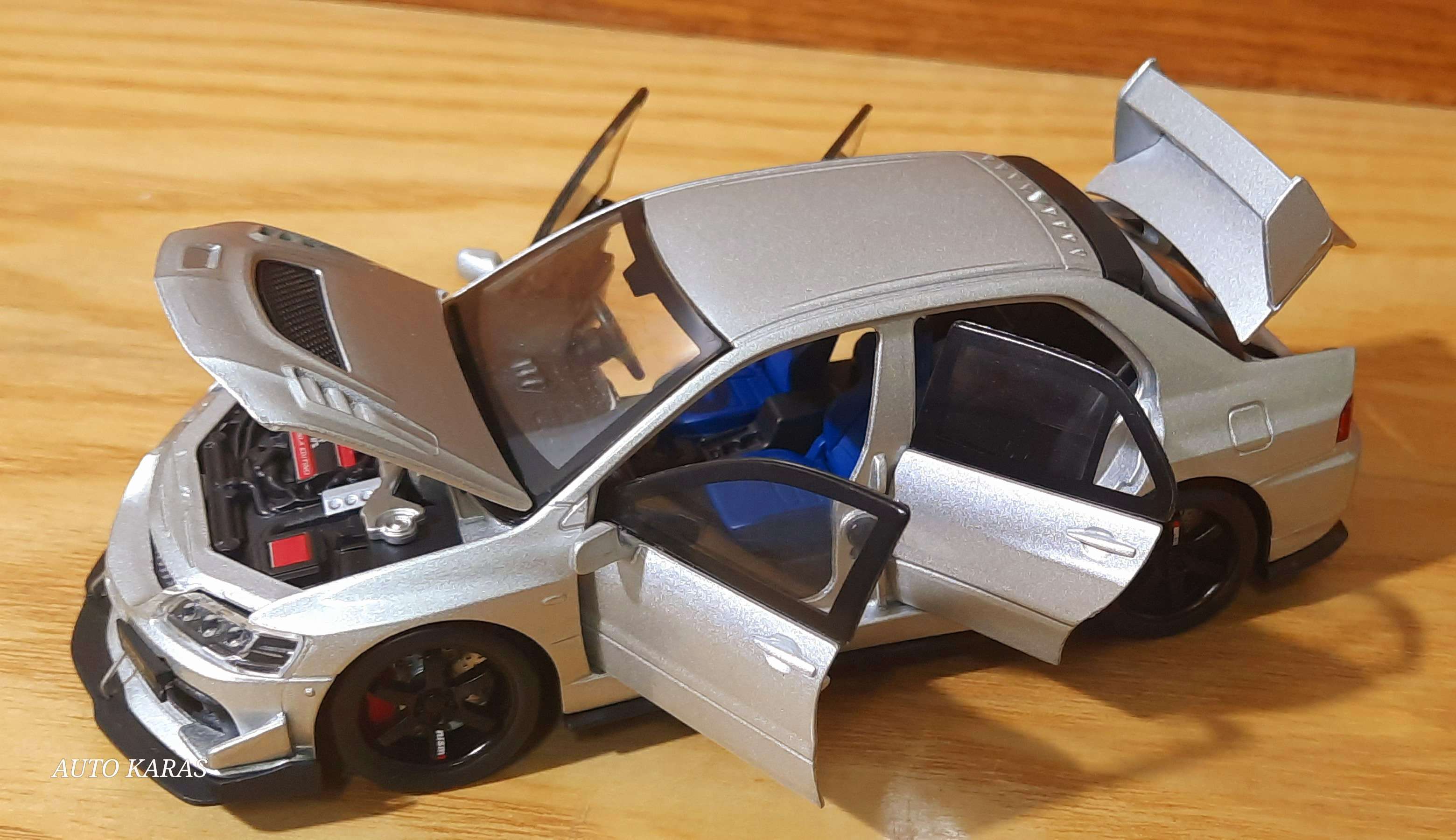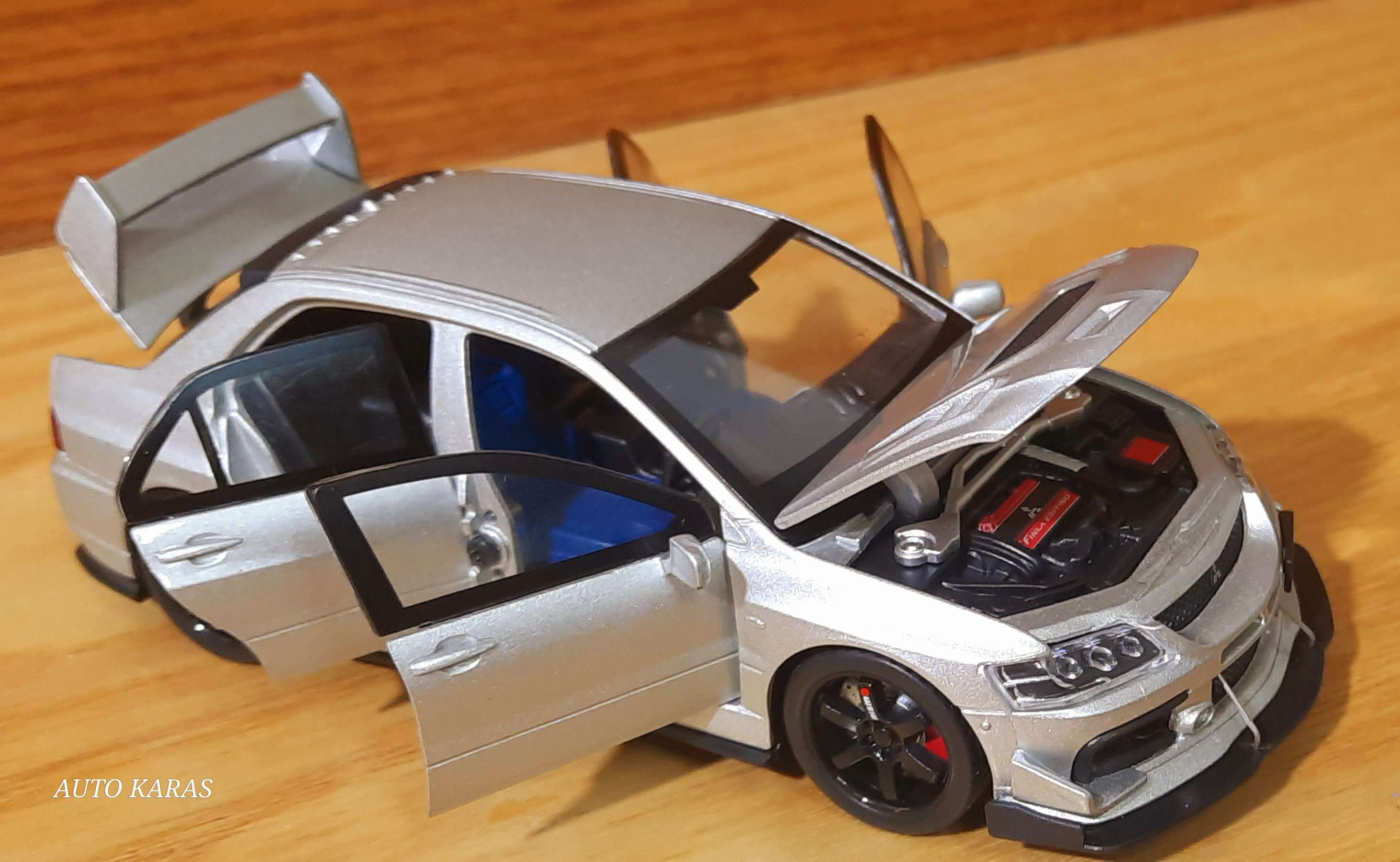 MITSUBISHI EVOLUTION خامة معدن تفاصيل ممتازة فتح 4 أبواب وكبوت وشنطة إضائة فوانيس أمامية وخلفية صوت موتور __ وصوت لوك أبواب كراسي متحركة __ كاوتش متحرك مقاس 16 cm