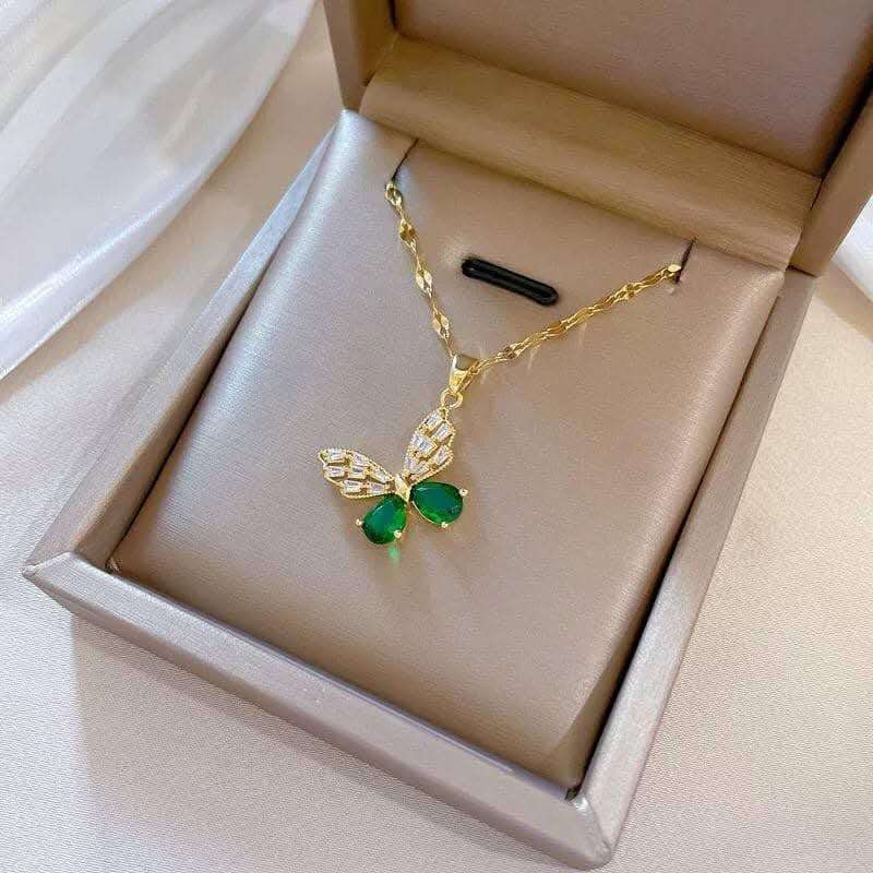 السلسلة الفراشه الترندي بفصوص زركون اييض واخضر استالس بيور ضد تغير اللون نهأي 🔥🔥بسعر 175جنيه ❤️❤️❤️❤️