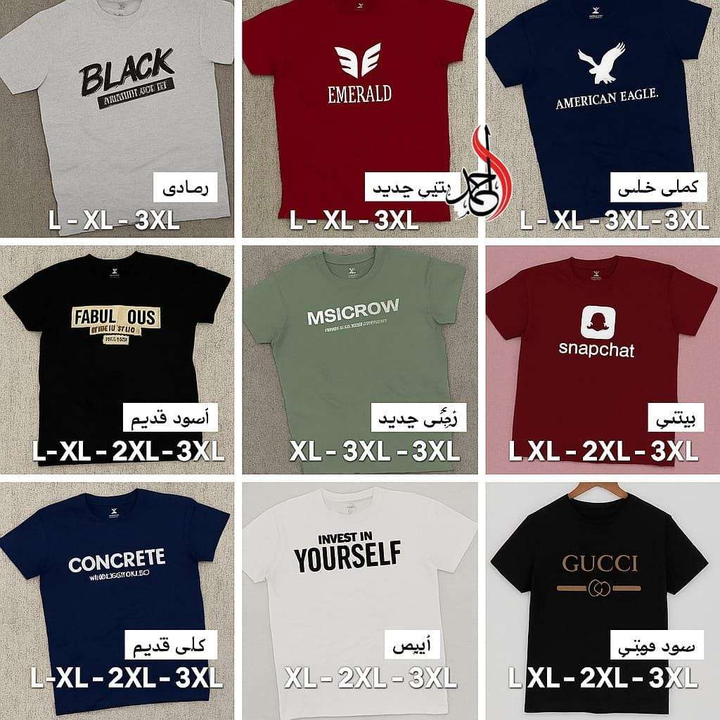 المنتج: تيشرت أولادي / رجالي المقاسات المتوفرة: L (لارج) XL (إكس لارج) 2XL (دبل إكس) 3XL (ثلاثة إكس) الألوان: حسب الألوان الظاهرة في الصورة عدد الطباعات المتاحة: 10 طباعات