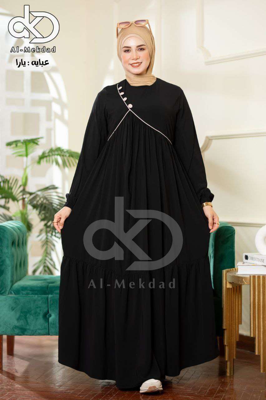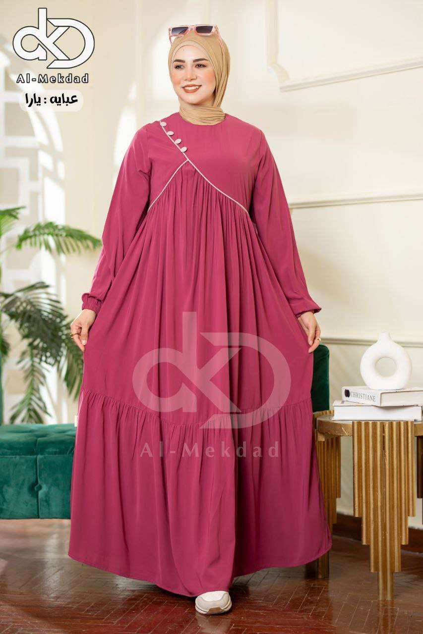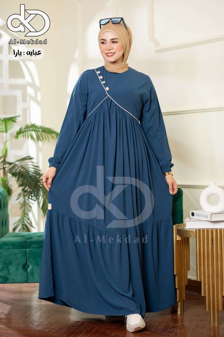 🕋 تكرار مميز من براند "المقداد السعودي" 😍✨ 💫 موديل "يارا" 🦋 فستان هادي وأنيق بطابع شرقي بلمسة مودرن 💃🏻 💖 فيه تفاصيل تخطف القلب: 🔹 فرونس ناعم يديكي وسع وراحة 🔸 أزرار زينة على الصدر بن