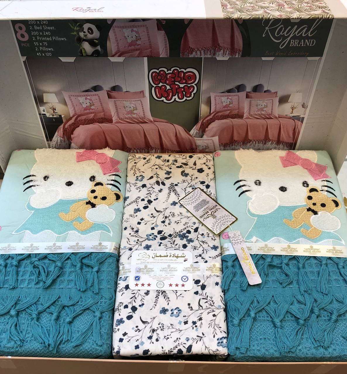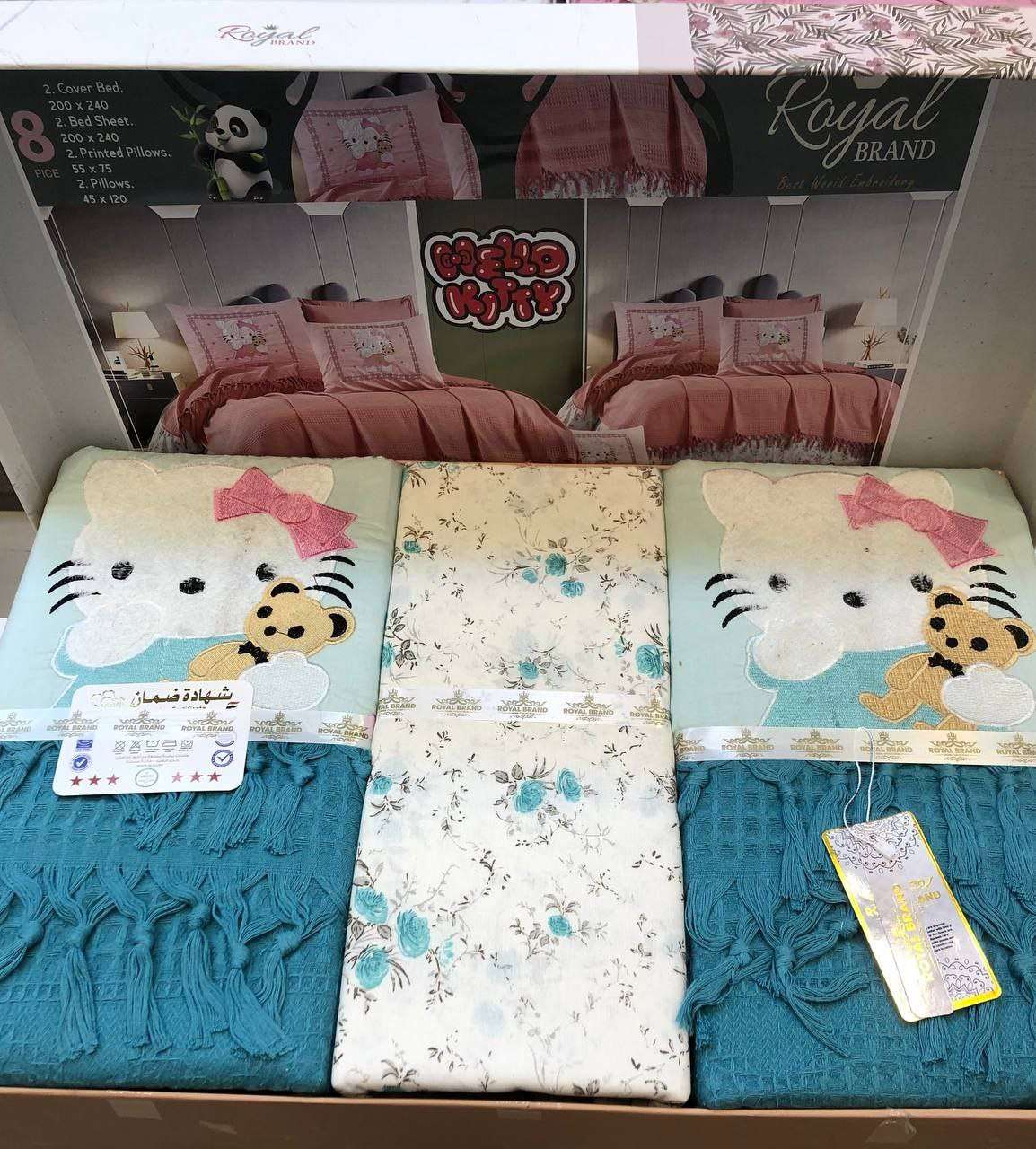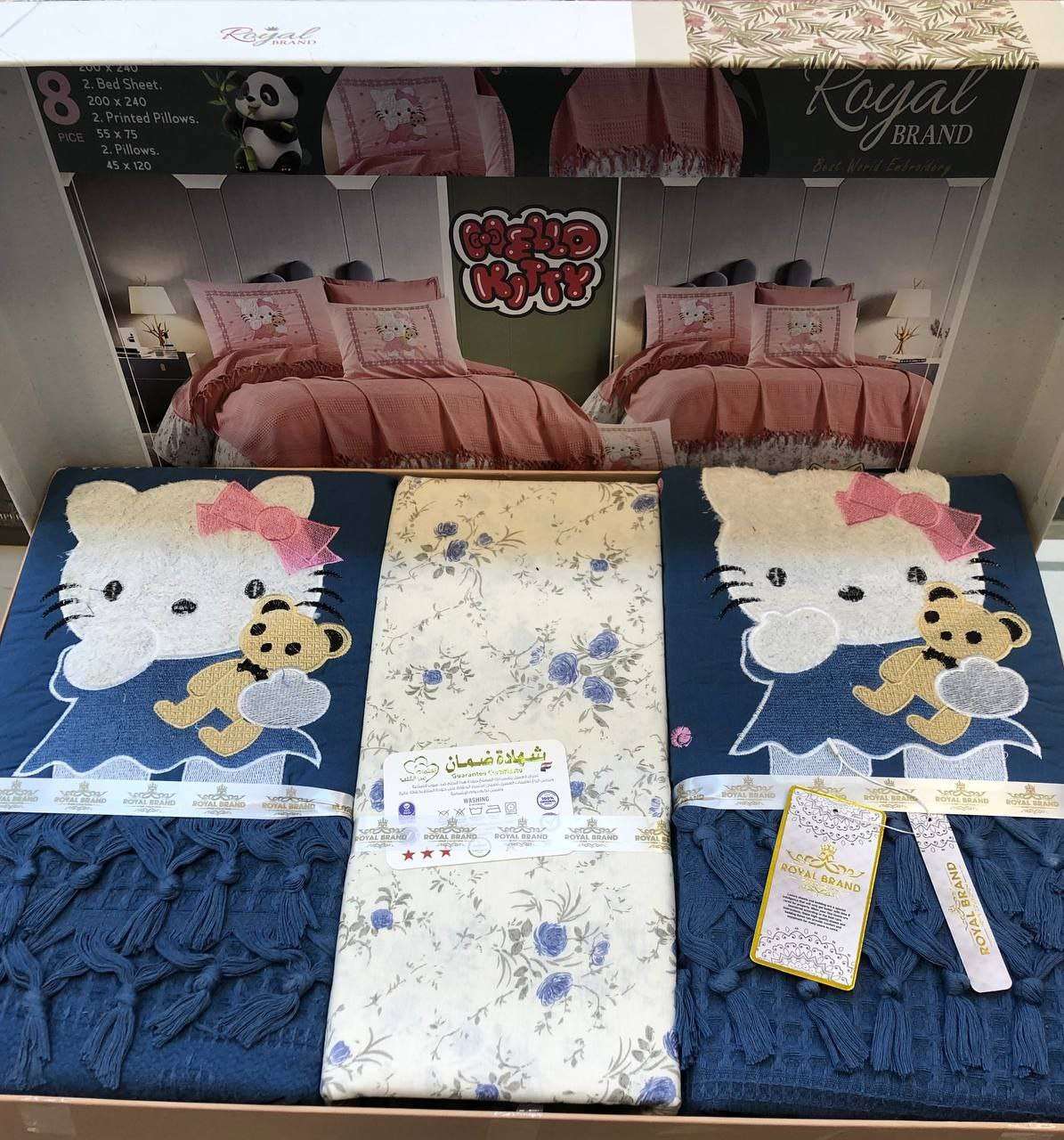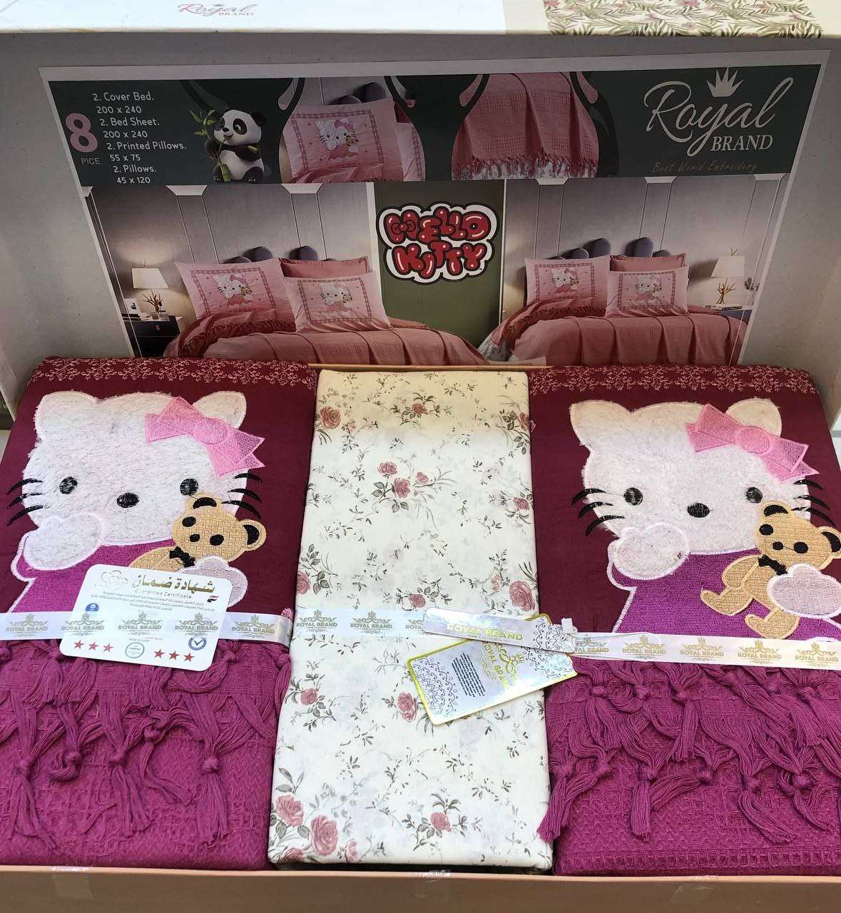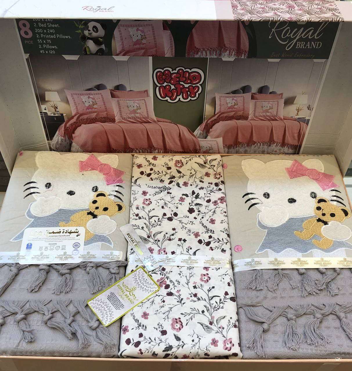 🌼 طقم رويال بكوفرتة بيكا شراشيب موديل كيتي اطفال🥰🥰🥰 8 قطع 2 ملاية مقاس200*240 2 كوفرتة مقاس 200*240 2 كيس مخده مقاس45*120🌟 2 خداديه مقاس60*70🌟 السعر 1500 ج