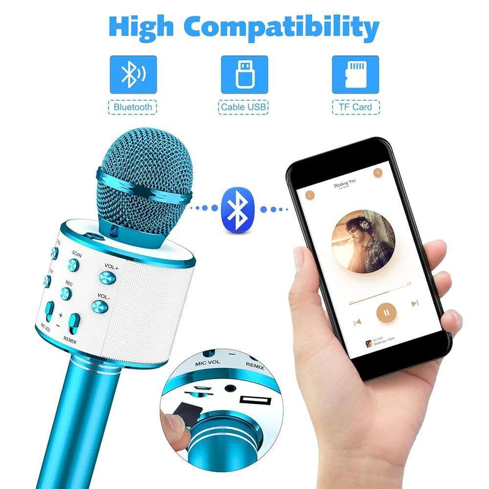 ♥️ اتوفر مايك كاريكوكي مع سبيكر بصوت نقي جدا 🧡 بيتشحن و بيجي معاه كابل USB 💛 فيه بلوتوث بنقدر نوصله بالموبايل ونشغل عليه اي حاجه ونغني معاها 💚 بيسجل فيه زراير نعلى ونوطي منها الصوت 💙 هو فيه