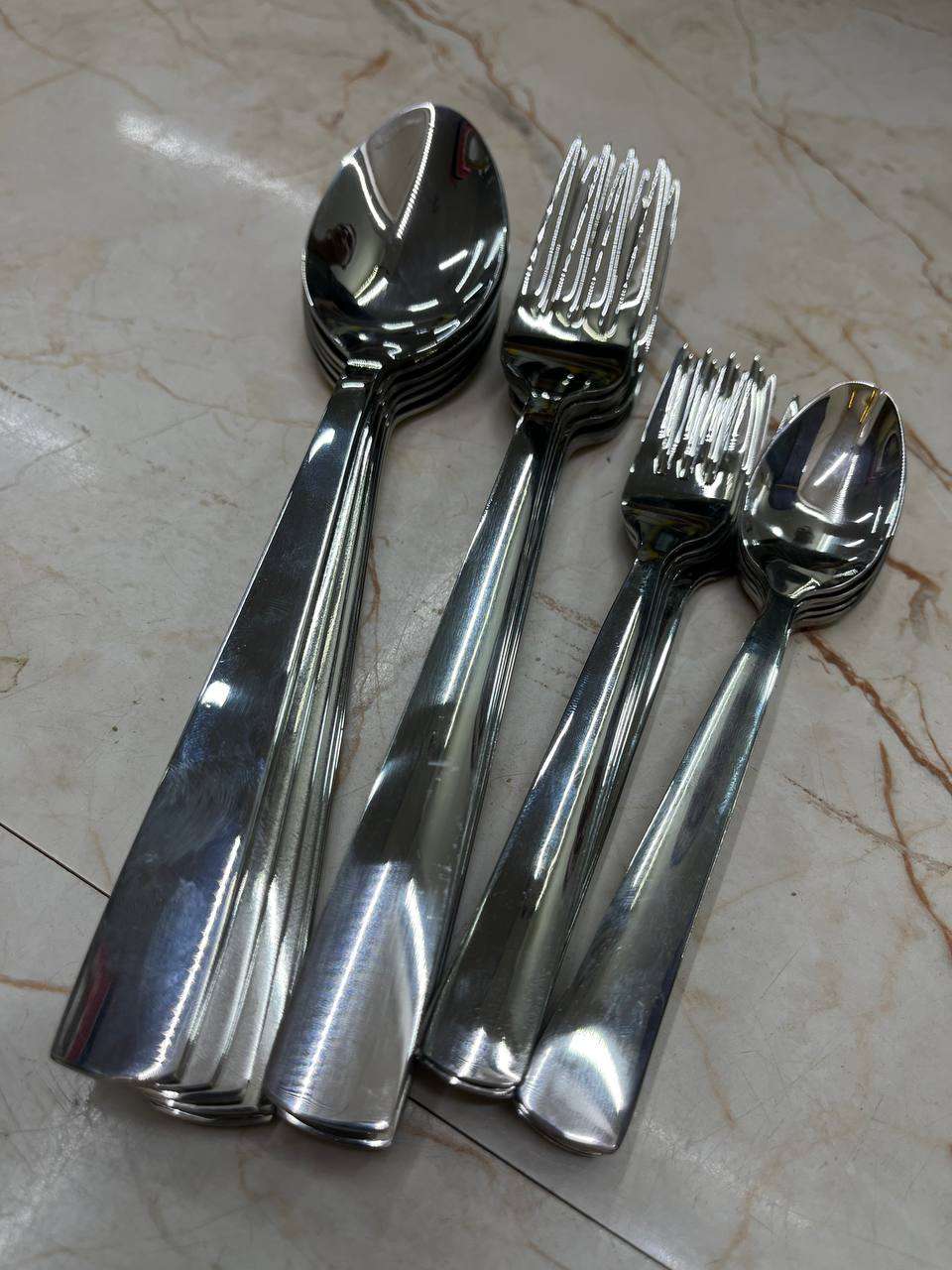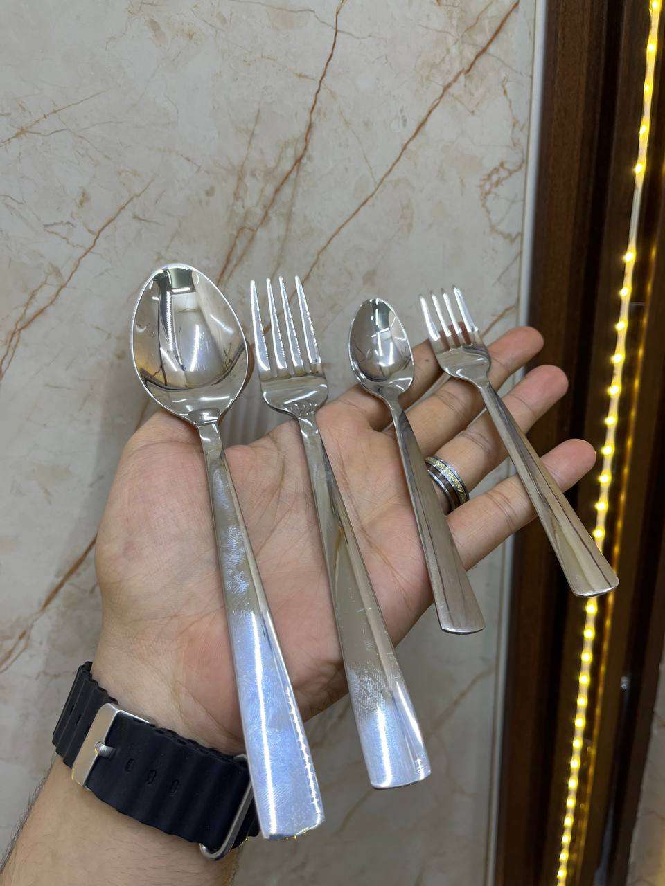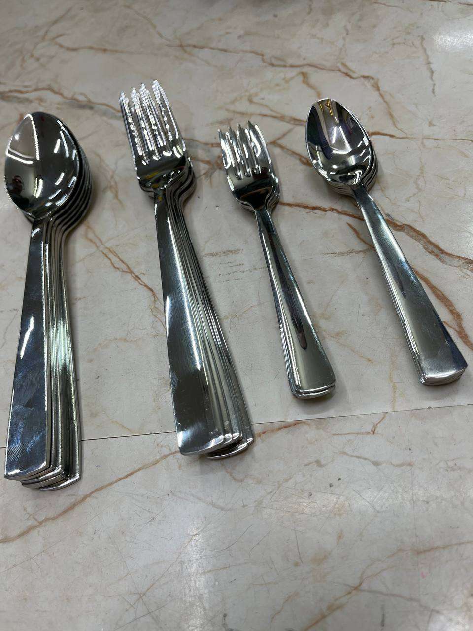 طقم 24 ق ساده❤️✨ طقم معالق و شوك استانلس 18/10 🔥🔥 مضد للصداء خامه استانلس الطقم مكون من 6 معالق كبير 6 معالق صغير 6 شوكه كبير 6شوكه صغيره الطقم 24ق بسعر 710 ج + مصاريف الشحن