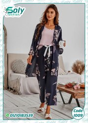 بيجامات بكم ٣ قطع بروب حزام ستان new summer٣٤٠ج.م
