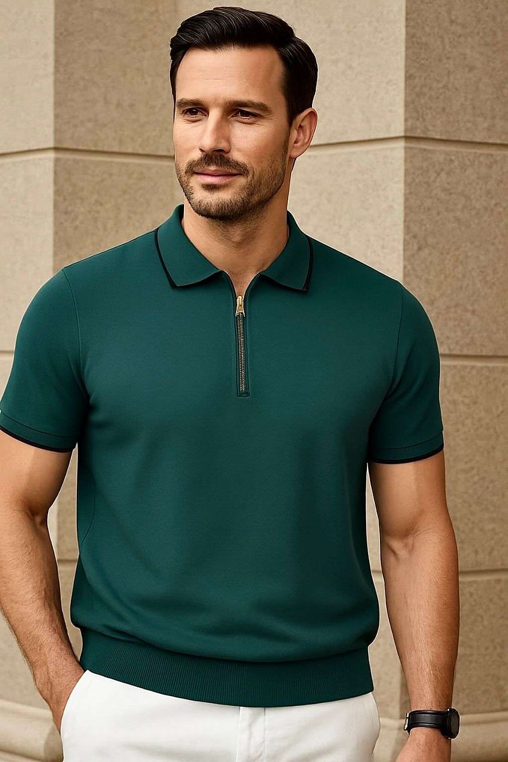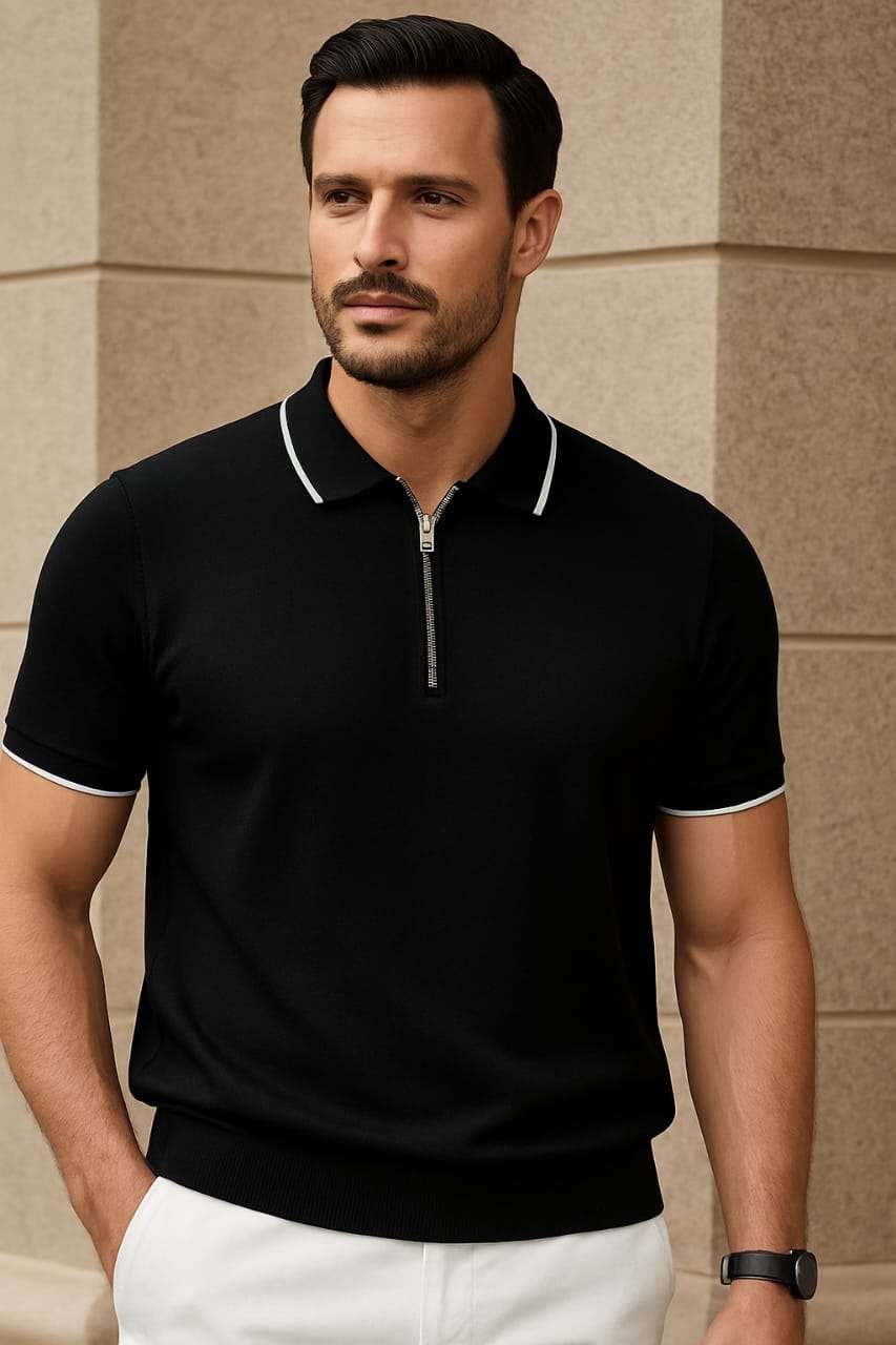 لو بتدور على حاجة تديك شكل أنيق وتحافظ على راحتك طول اليوم 👌 جبنالك التيشيرت اللي معمول بخامة عجينة ناعمة ومطاطية 💯 ملمس ناعم، وجودة خرافية ✨ سوستة خفيفة بتدي شكل كلاسيك مودرن 🔥 ينفع تلبسه في ش