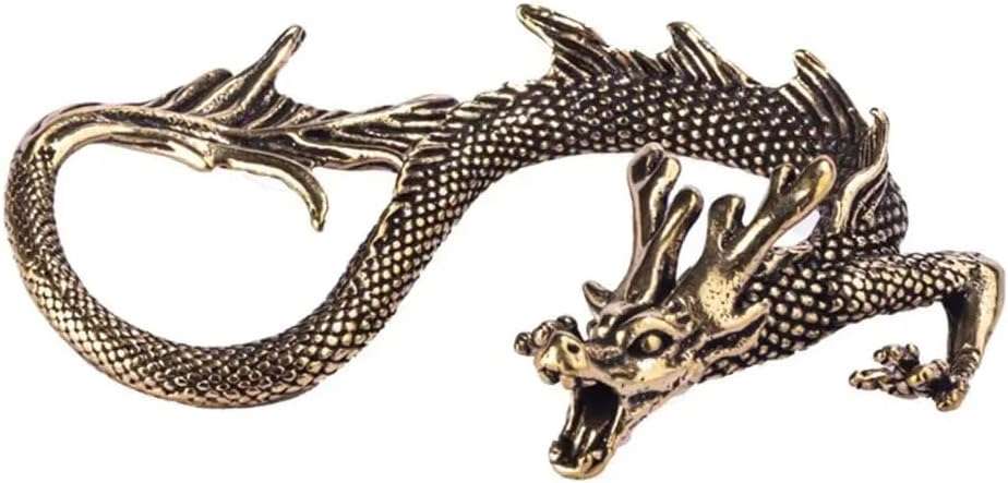 تمثال تنين صيني للحظ والحظ للمنزل والمكتب ورف الكتب، مصنوع بحرفية نحاسية رائعة: مصنوعة بدقة من النحاس عالي الجودة، تتميز هذه الزينة بصناعة متقنة، مما يضمن المتانة والمتانة للحصول على سحر يدوم طويلاً ي