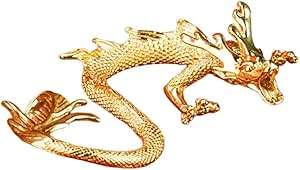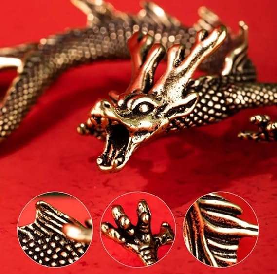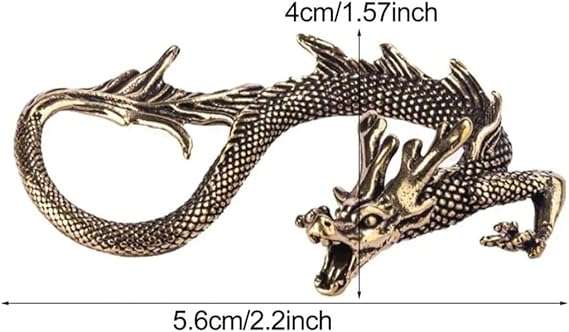 مثال تنين نحاسي لسطح الطاولة، تمثال تنين صيني للحظ والحظ للمنزل والمكتب ورف الكتب، مصنوع بحرفية نحاسية رائعة: مصنوعة بدقة من النحاس عالي الجودة، تتميز هذه الزينة بصناعة متقنة، مما يضمن المتانة والمتان