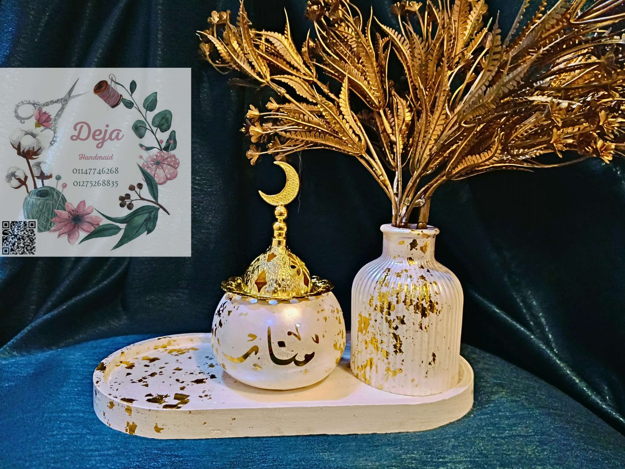 فازه + مبخره بطبق وغطا معدن + كوستر صينيه يمكن تغيير الالوان واضافة اسم ع المبخره