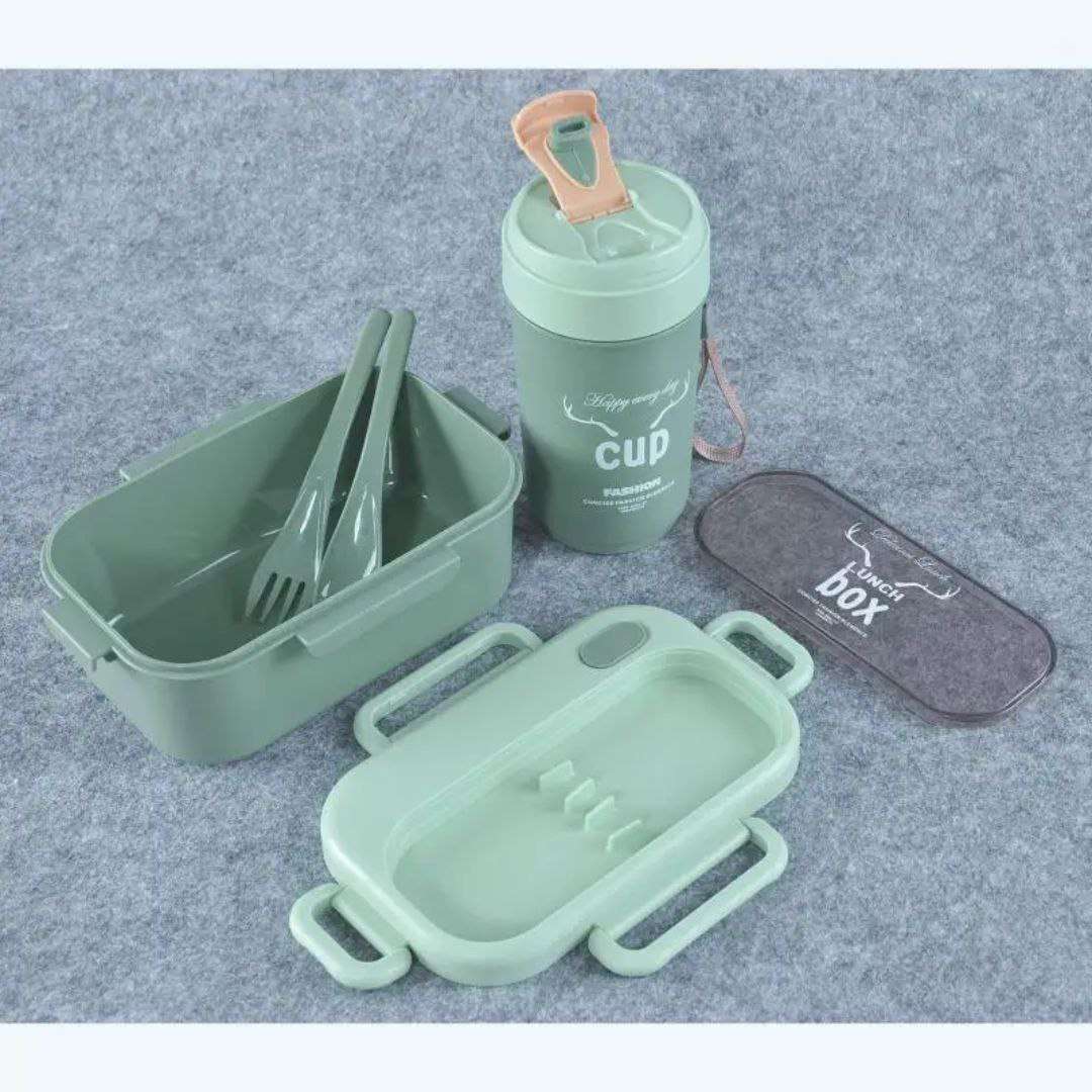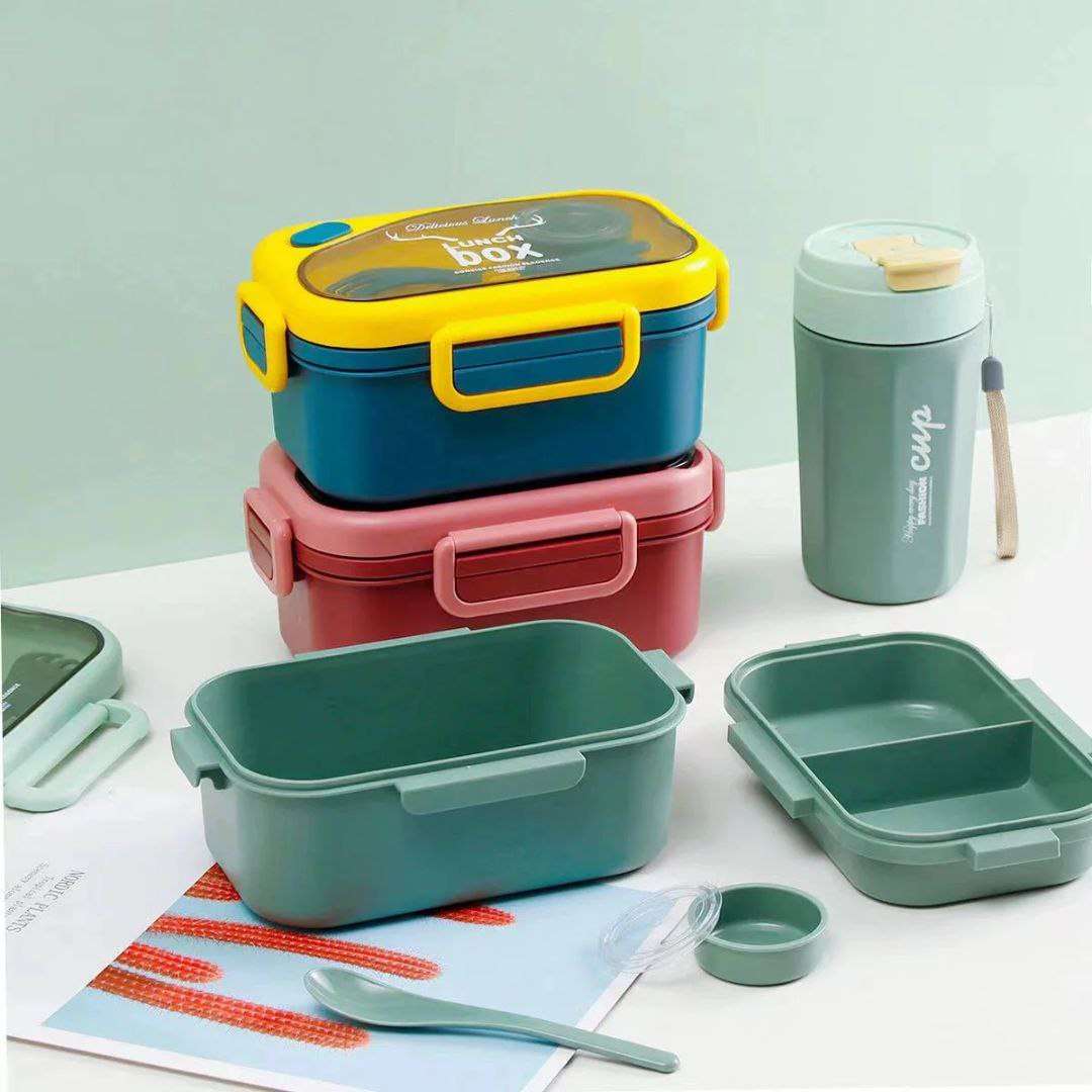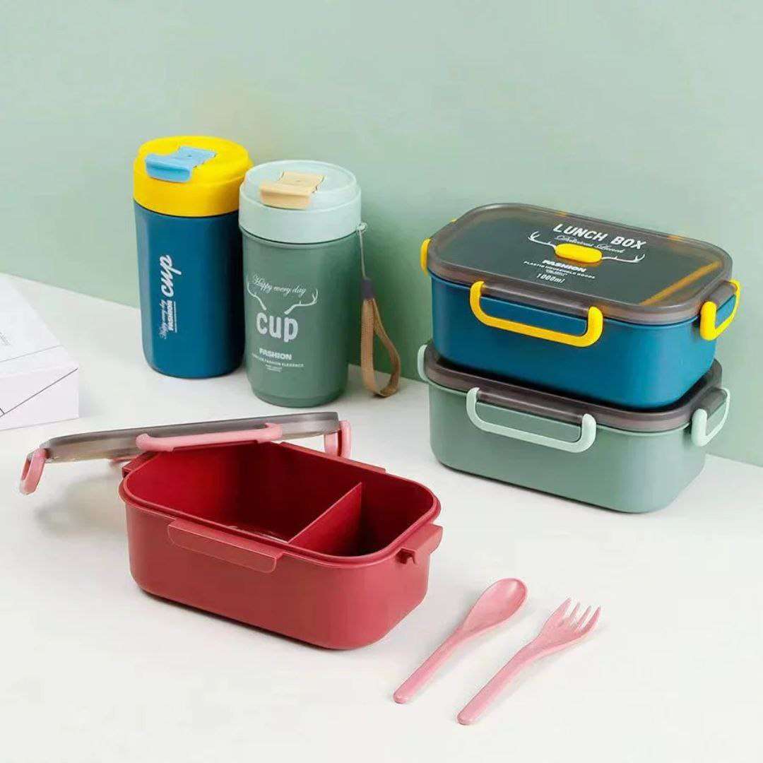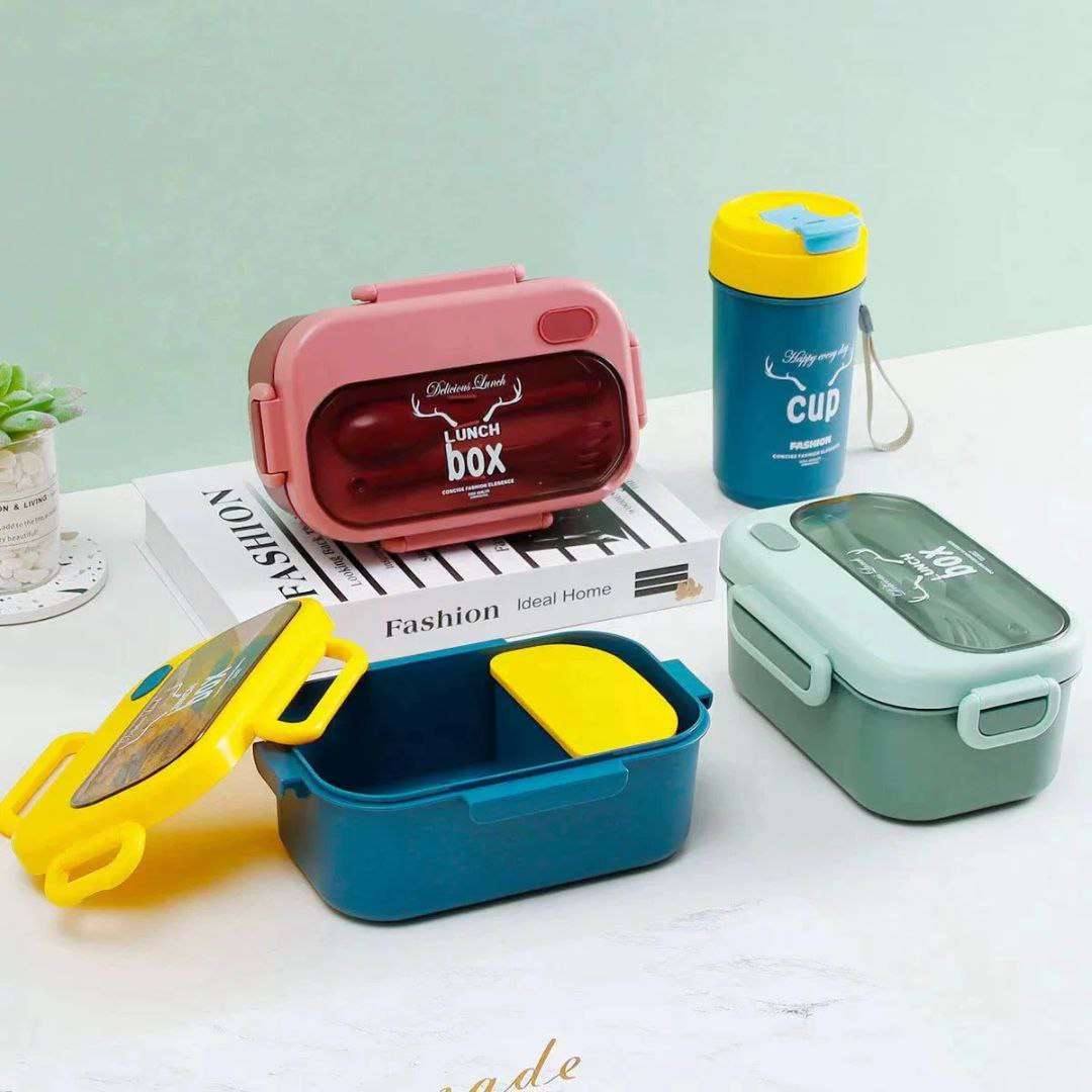 لانش بوكس + زمزمية للأطفال – تصميم لطيف وأنيق ❤️ 🎒 مجموعة مثالية للمدرسة أو الخروج 🍱 لانش بوكس بأشكال جذابة للأطفال 🔒 مزود بغطاء كلبس محكم يمنع الانسكاب تمامًا 🥄 يحتوي على ملعقة وشوكة داخلية م