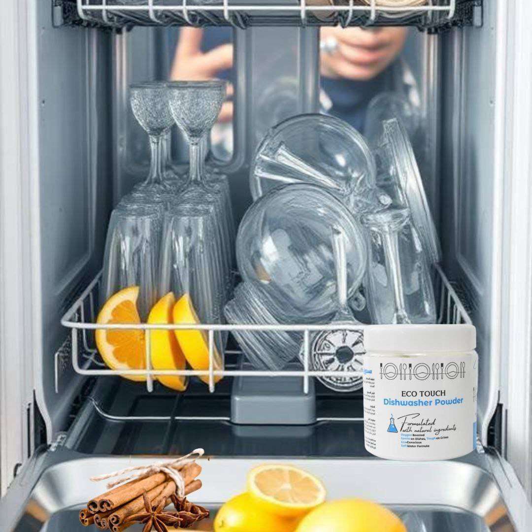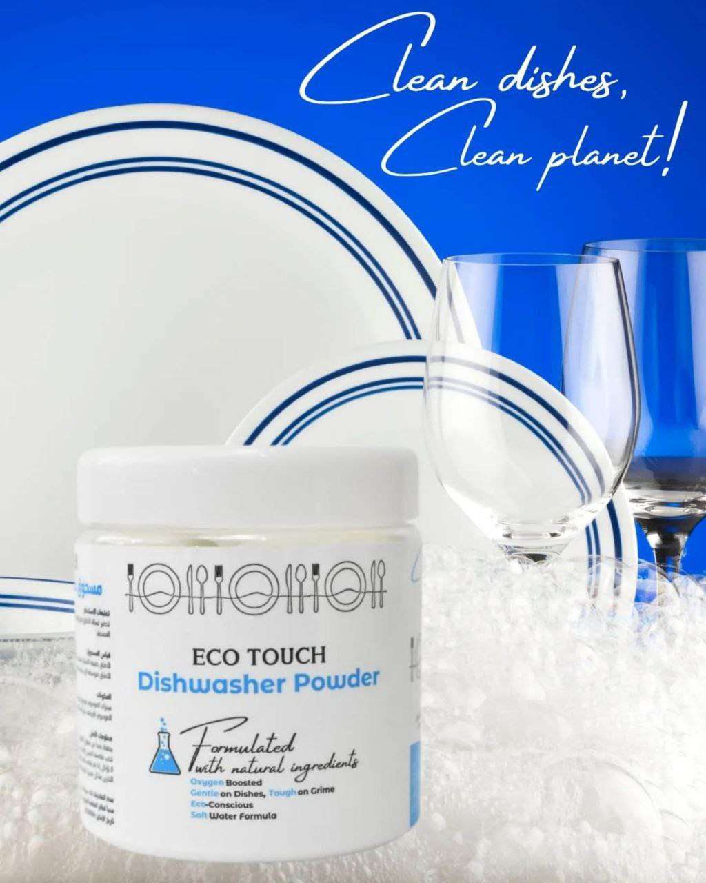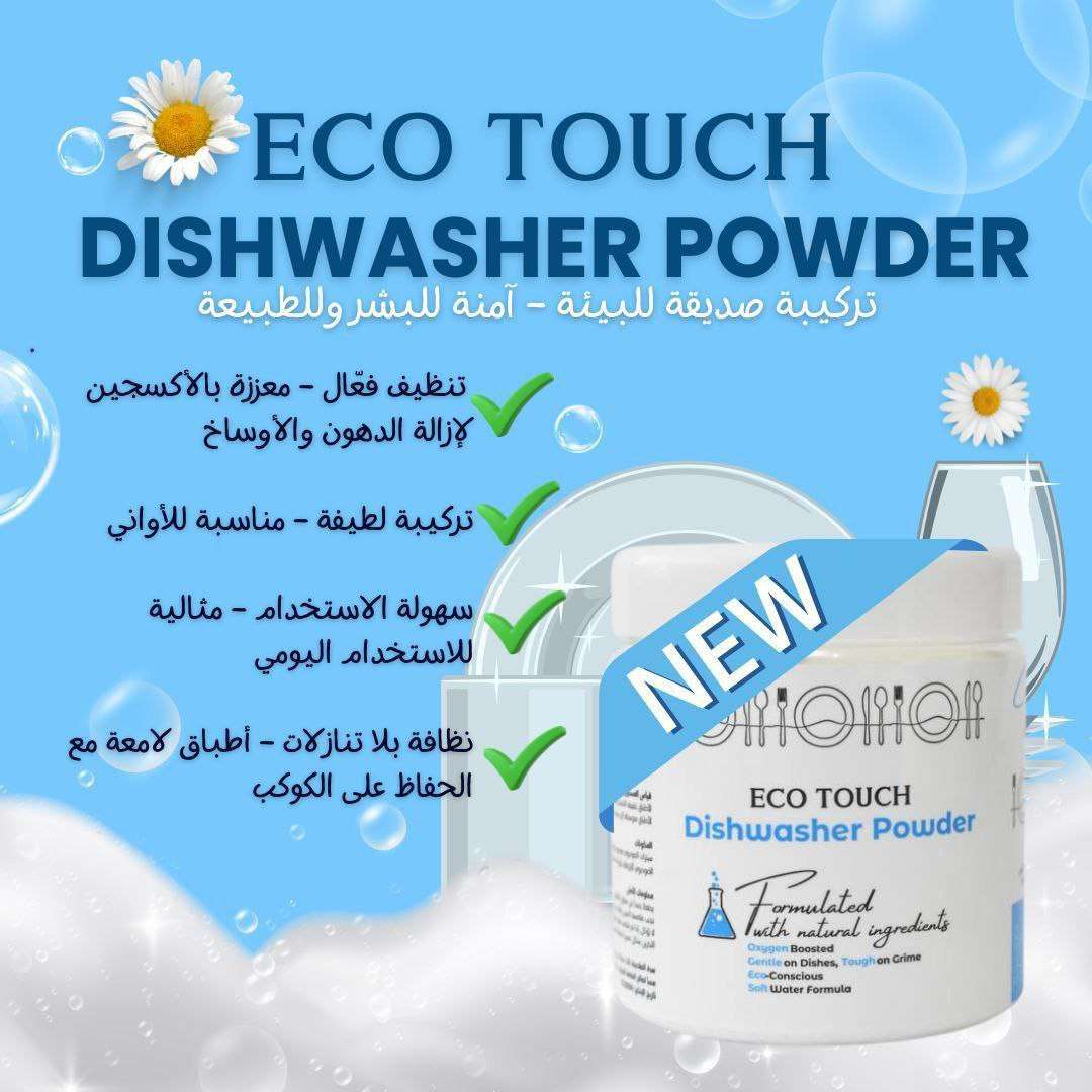 الحجم 300 gm الوحدات : 6 وحدات *طريقة الاستخدام لمسحوق غسالة الصحون 👇🏻👇🏻👇🏻👇🏻* للحصول على أفضل النتائج مع مسحوق EcoTouch، قم بتحضير غسالة الأطباق عن طريق إزالة بقايا الطعام من الأطباق وترتيب