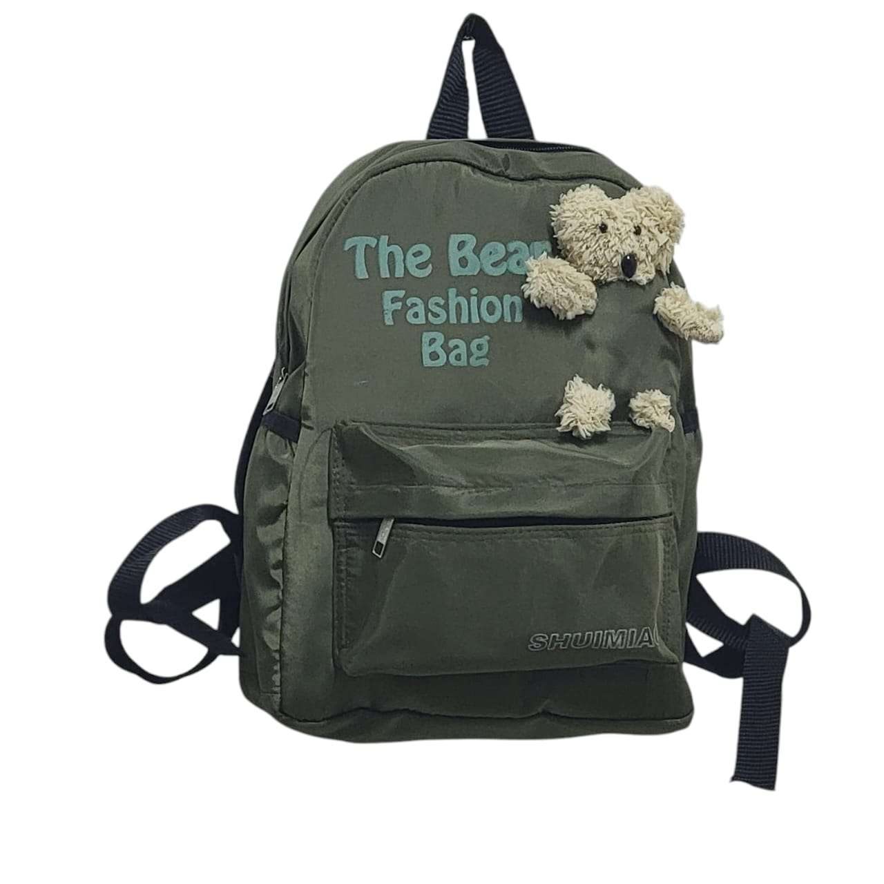 "شنطة ظهر عصرية للنساءحقيبة ظهر متوسطة الحجم، تتميز بتصميم شبابي ومرح، ومناسبة للاستخدام اليومي الخفيف مثل الذهاب إلى الجامعة، المدرسة، أو للنزهات.الحقيبة باللون الزيتي الداكن (Dark Olive Green) ، وهو