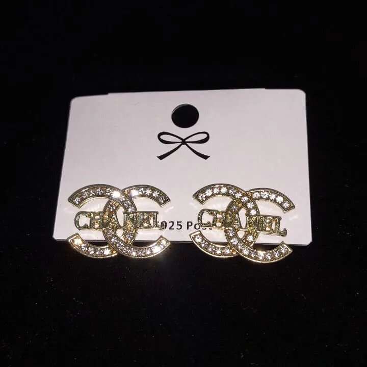 حلق أنيق بتصميم الحروف المتداخلة الشهيرة، مطلي باللون الذهبي ومرصع بفصوص لامعة تضيف له لمسة فخمة ومميزة. مناسب لإطلالة راقية وجذابة في جميع المناسبات