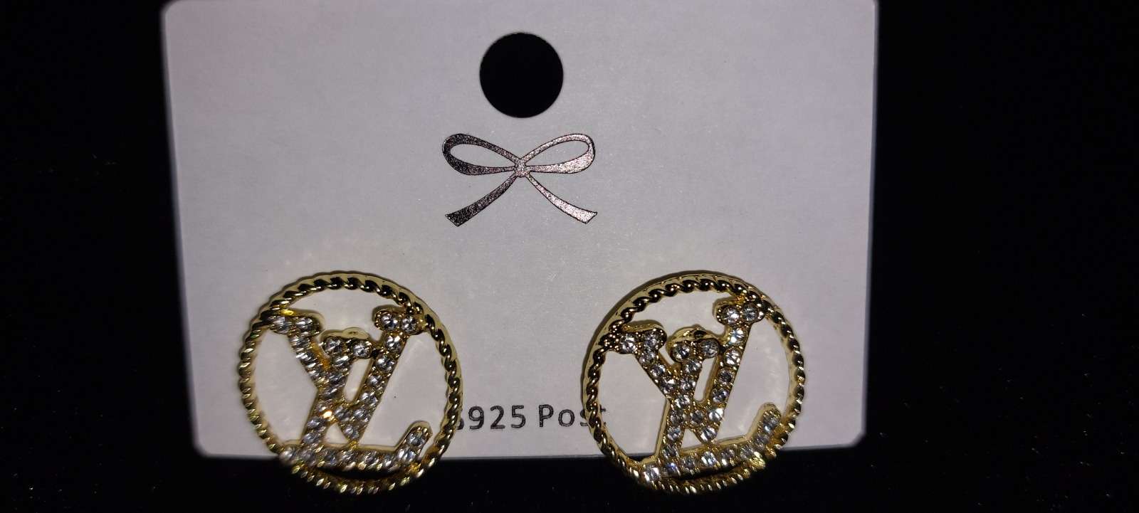تميّزي بإطلالة أنيقة مع هذه الأقراط الدائرية الفاخرة المصنوعة من خامات عالية الجودة والمطلية بالذهب. تصميم أنثوي راقٍ بحرفي LV في المنتصف، مرصع بفصوص لامعة تضيف لمسة من الفخامة والرقي. مناسبة للإطلالا