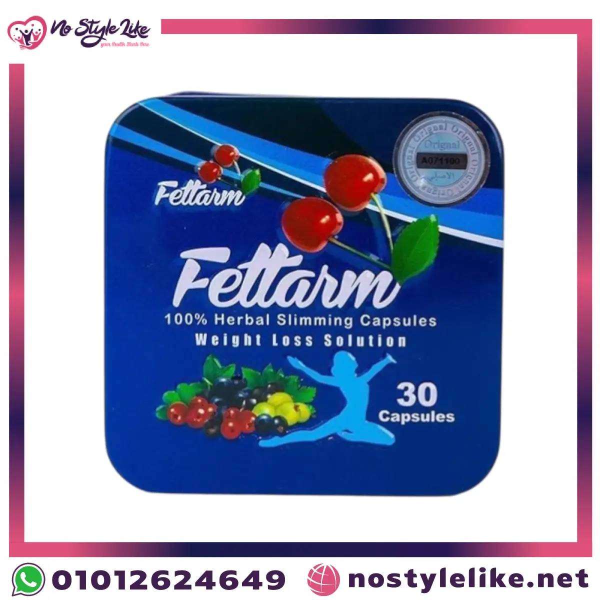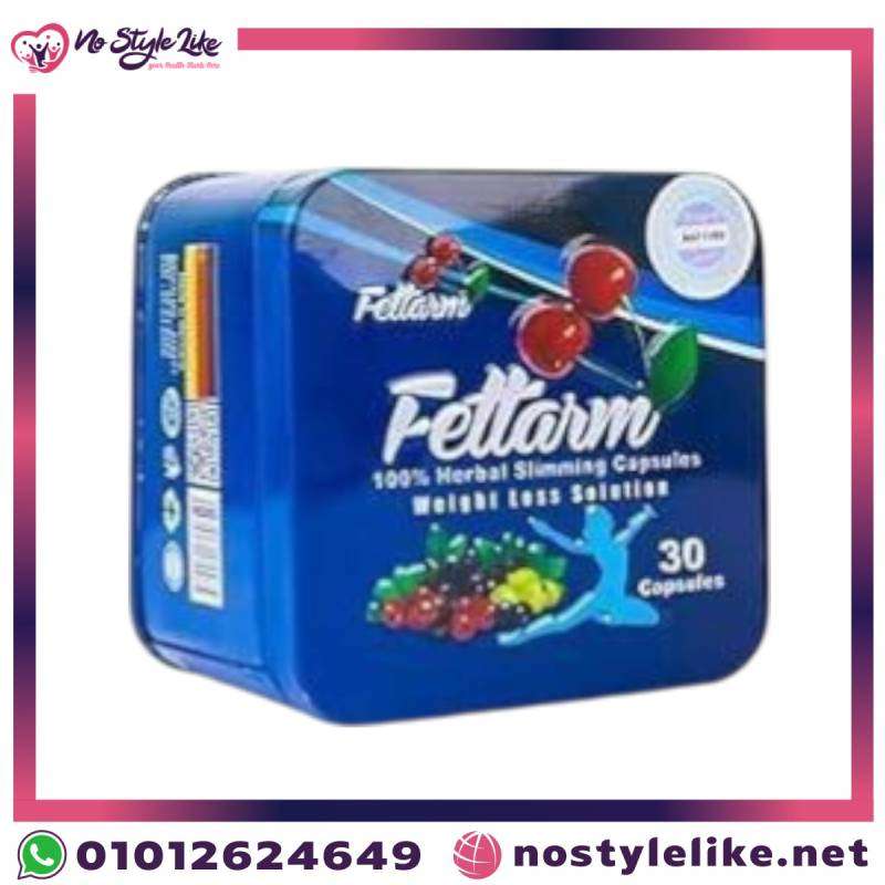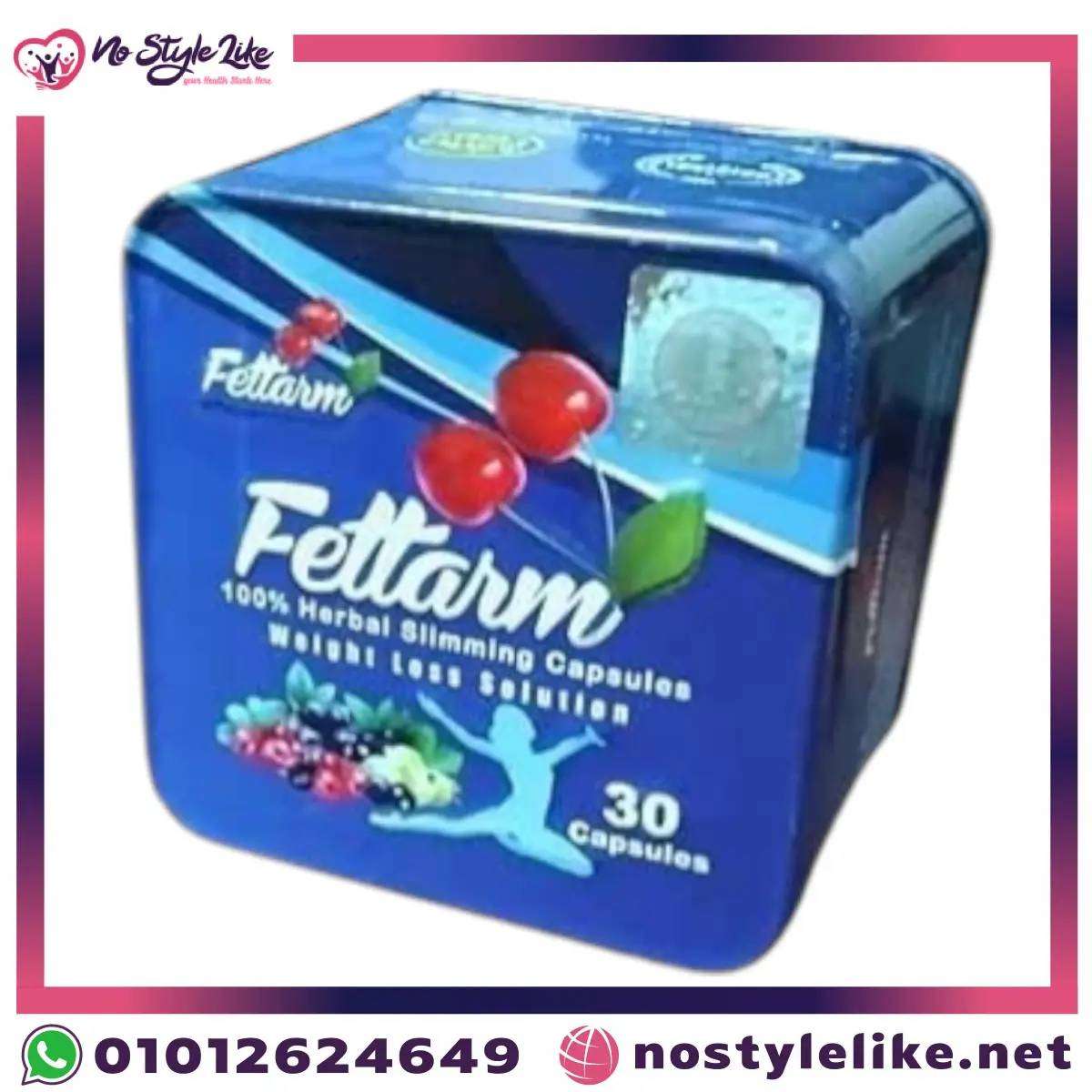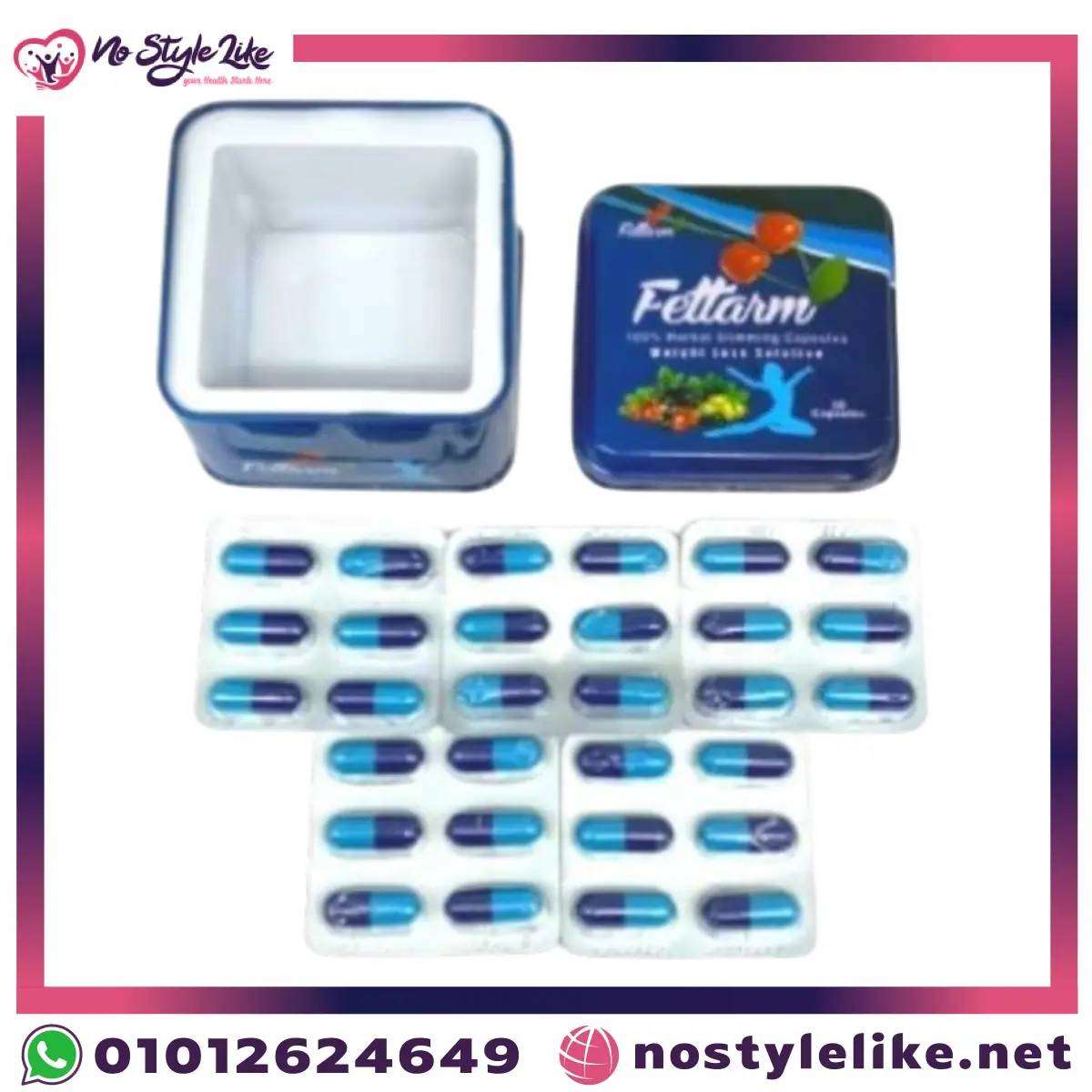 الاسم فيتارم الأزرق للتخسيس (Fettarm Blue) العلامة التجارية Fettarm التركيز غير محدد (مزيج عشبي طبيعي) العدد 30 كبسولة الشكل كبسولات جيلاتينية صلبة الشكل الخارجي علبة معدنية زرقاء اللون برسومات ف