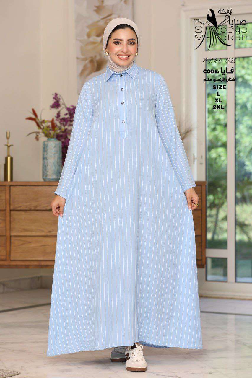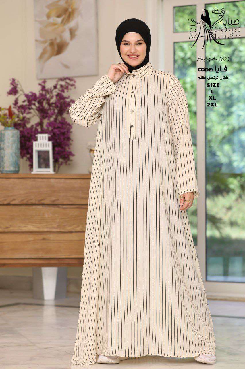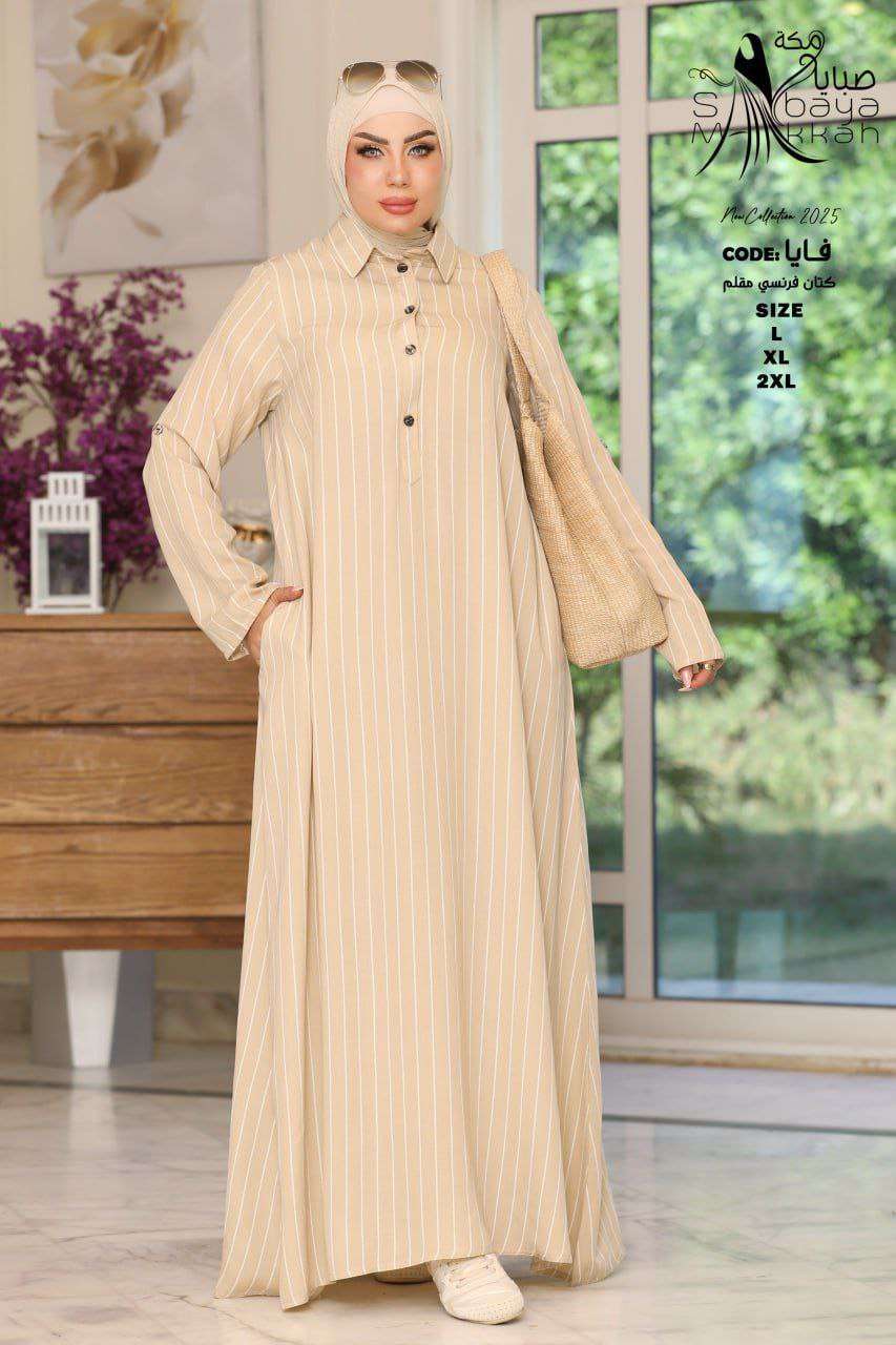 _ الجديد من براند" صبايا مكه " ❤️🔥 _ موديل" فايا " ♥️🫶🏻 _ ماتريال "كتان فرنسي مقلم"🪡 _ مقاس" L. XL. 2XL " 🧷 _ محيط الصدر " 58.60.62" 🔥بسعر 680 بدلاً 780🔥🤩