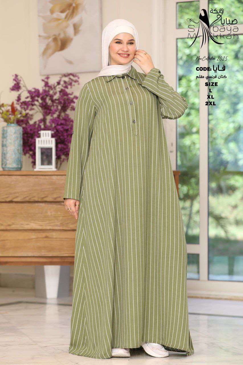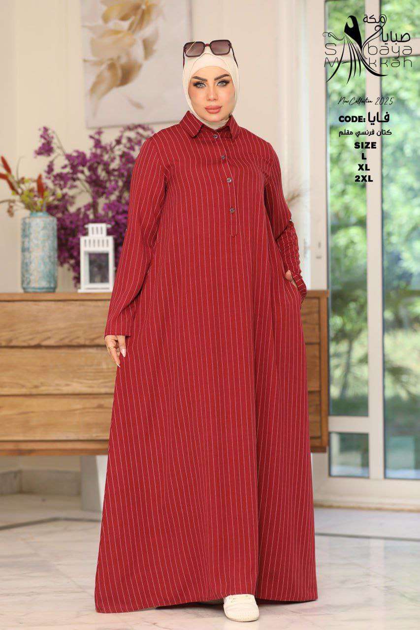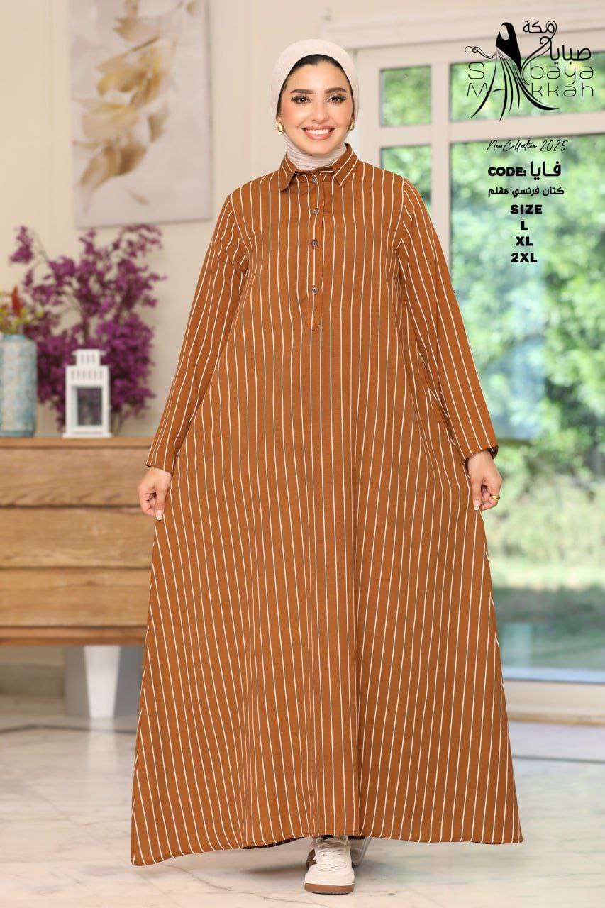 _ الجديد من براند" صبايا مكه " ❤️🔥 _ موديل" فايا " ♥️🫶🏻 _ ماتريال "كتان فرنسي مقلم"🪡 _ مقاس" L. XL. 2XL " 🧷 _ محيط الصدر " 58.60.62" 🔥بسعر 680 بدلاً 780🔥🤩