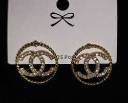 حلق دائري فخم بتصميم CC مرصع بفصوص لامعة٢٢ج.م