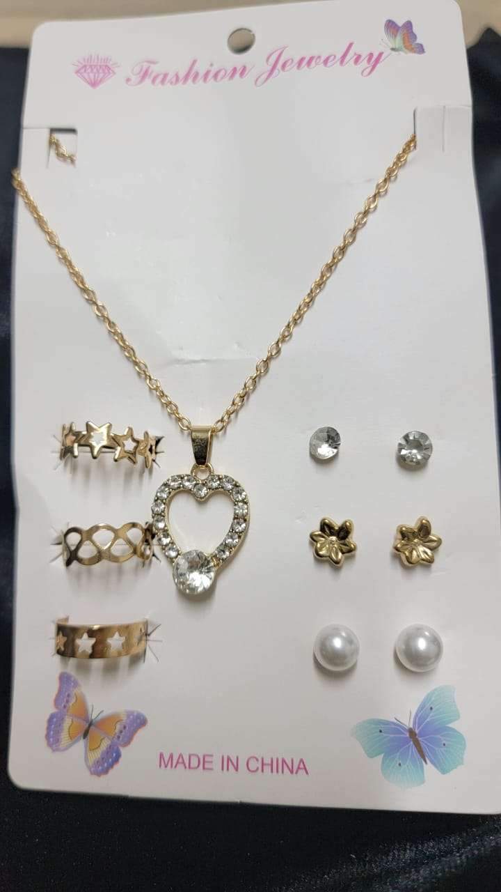 سلسلة قلب بفص + 3 خواتم +3 حلقان