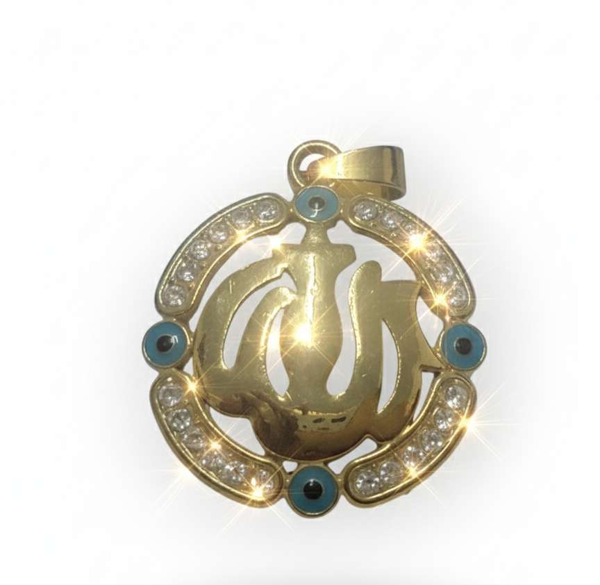بركة وجمال في قطعة واحدة!نقدم لكِ هذه الدلاية الروحانية الأنيقة التي تحمل اسم الجلالة "الله" بخط عربي جميل، محاطة بدائرة مرصعة بأحجار كريستالية لامعة وتتخللها لمسات من الأحجار الزرقاء الجذابة.هذه الدل