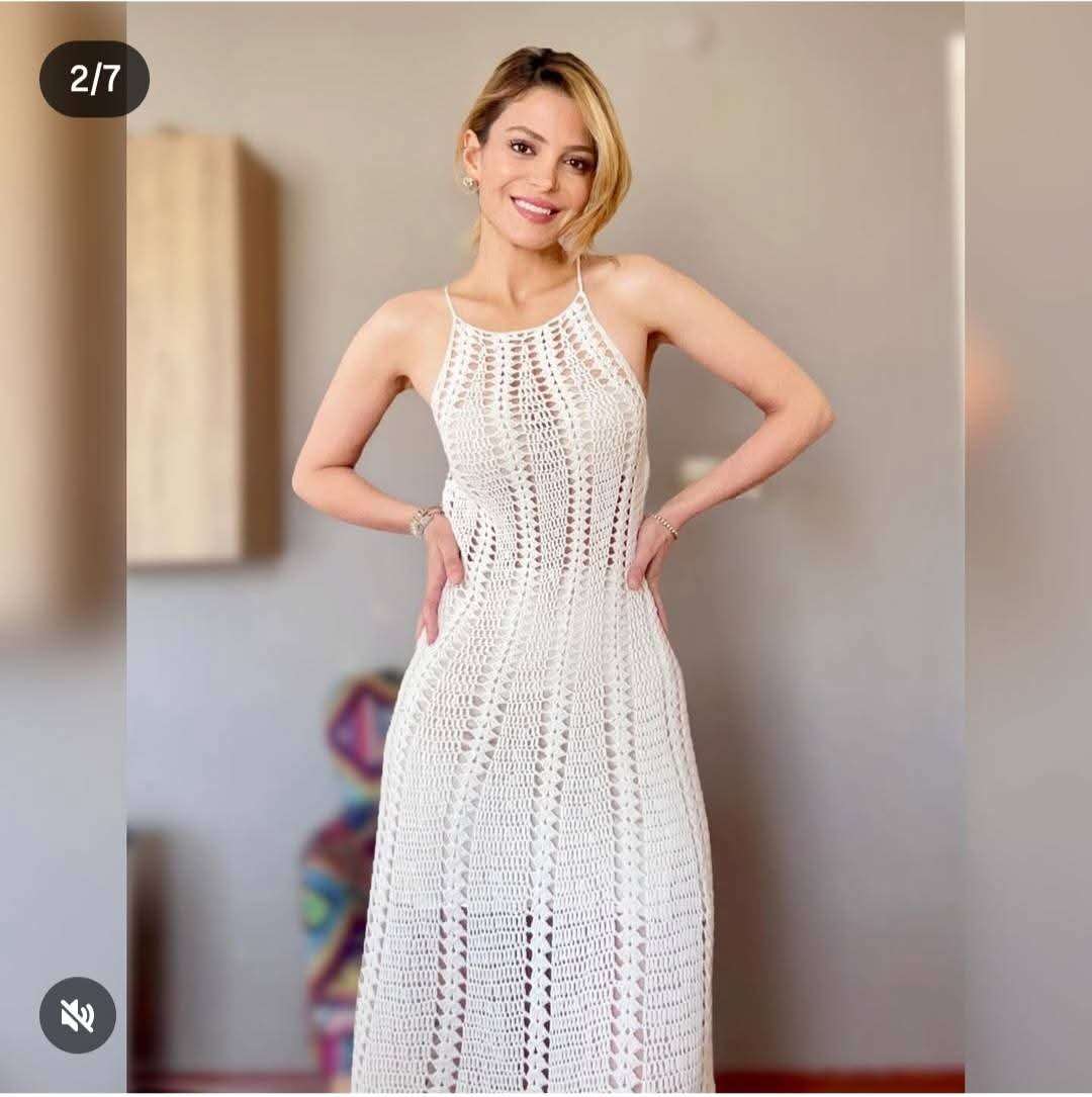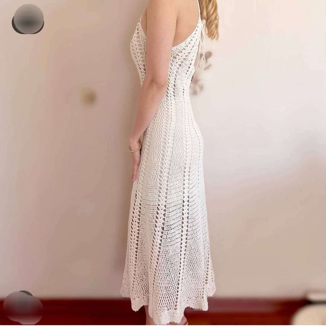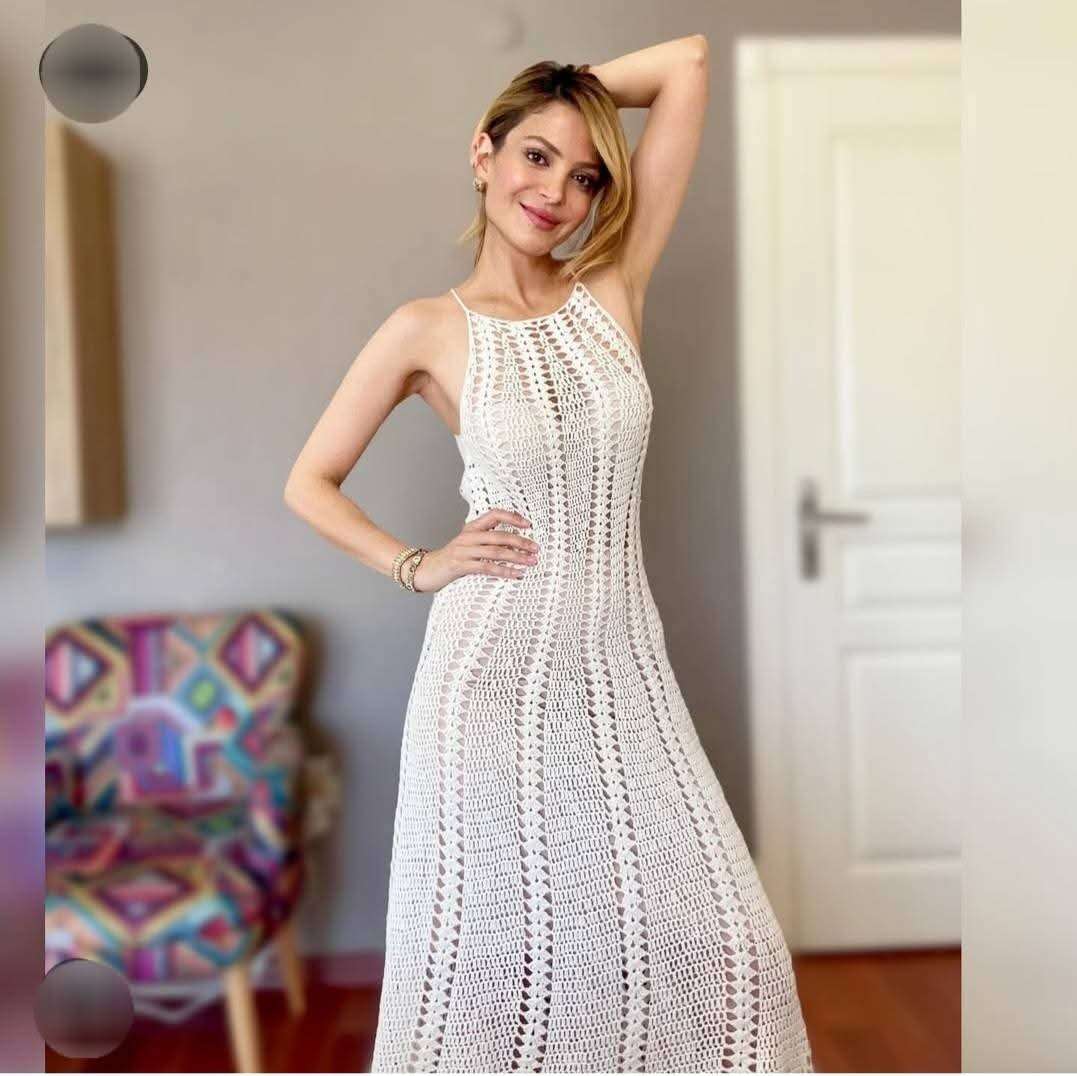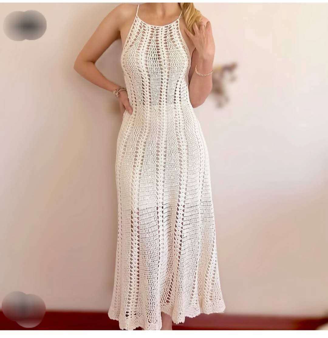 فستان حريمي كروشيه بخيط قطن للبحر والصيف