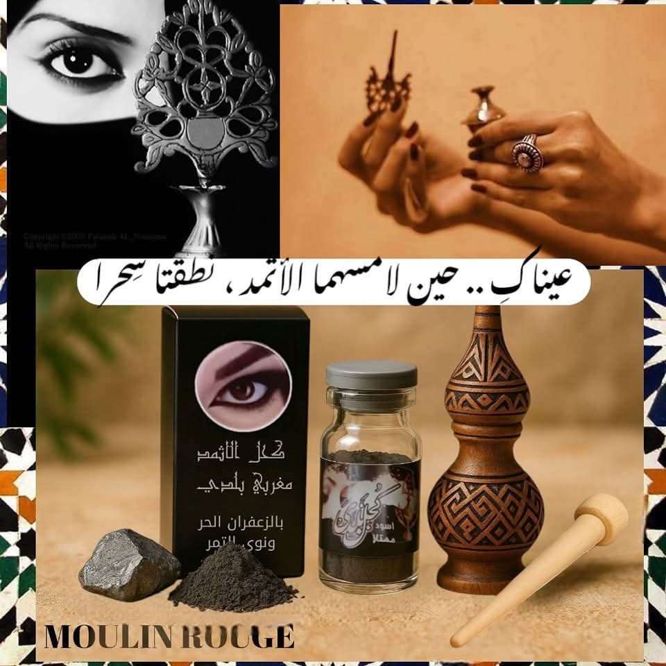 كحل الإثمد المغربي الأصيل من مولان روج سر العيون الساحرة... من تقاليد المغرب العريقة إلى جمالكِ اليوم فوائده: 🖤يعزز من نمو الرموش ويقويها 🖤يحافظ على صحة العين وينقيها 🖤يمنحكِ لون أسود طبيعي