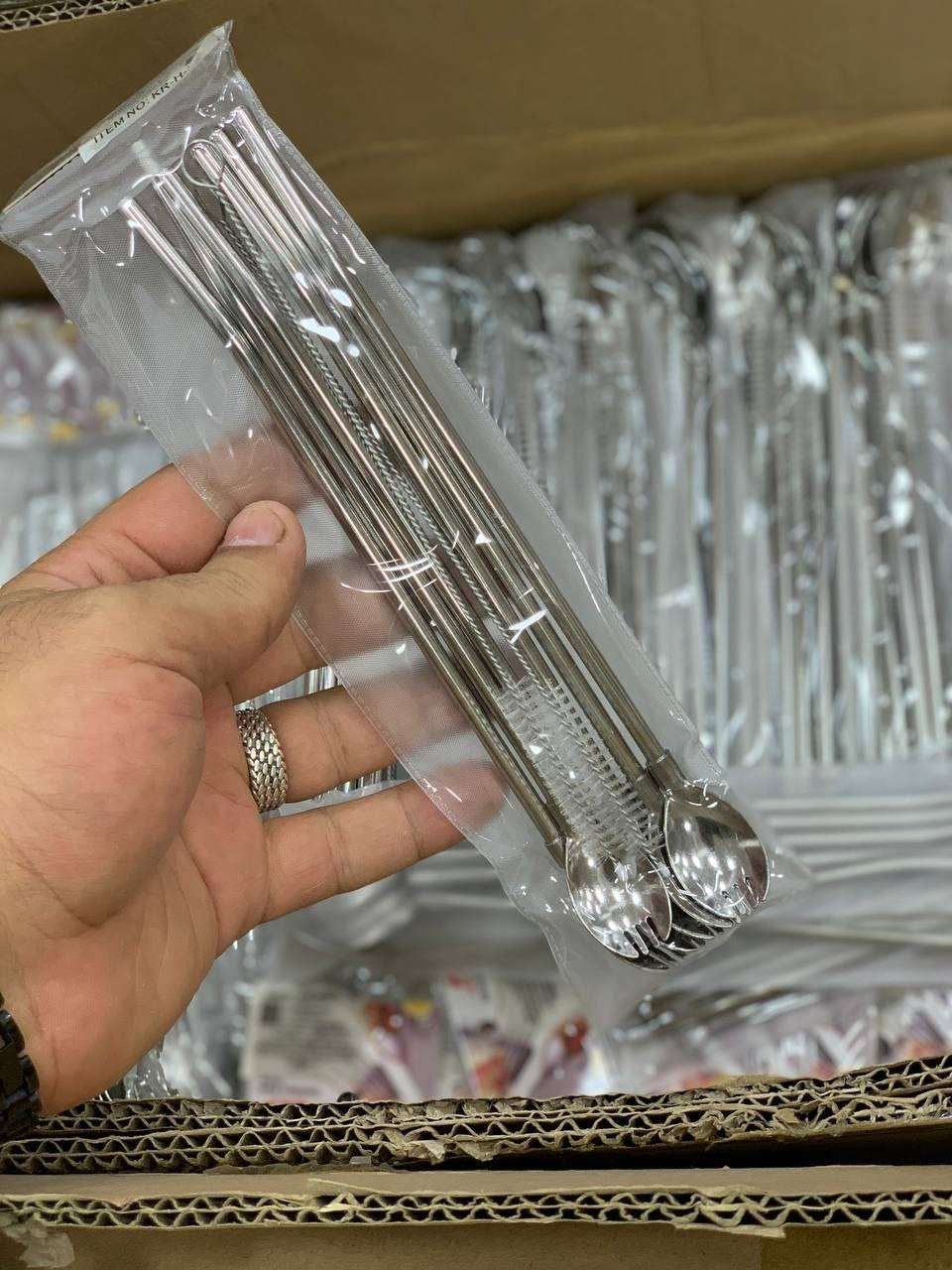 جديد🙈 ٢*١👌🏻 منتج مستورد 🇨🇳 استيل عير قابل للصدء⭐️ معاقه كوكتيل و شاليموه في وقت واحد 😃 التكوين 5 معلقة + 2 فرشه تنظيف كود okr-h-279