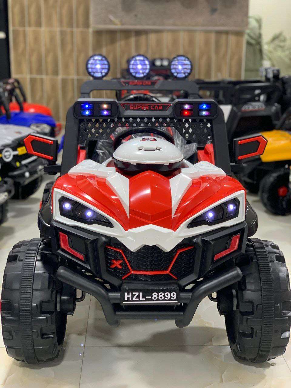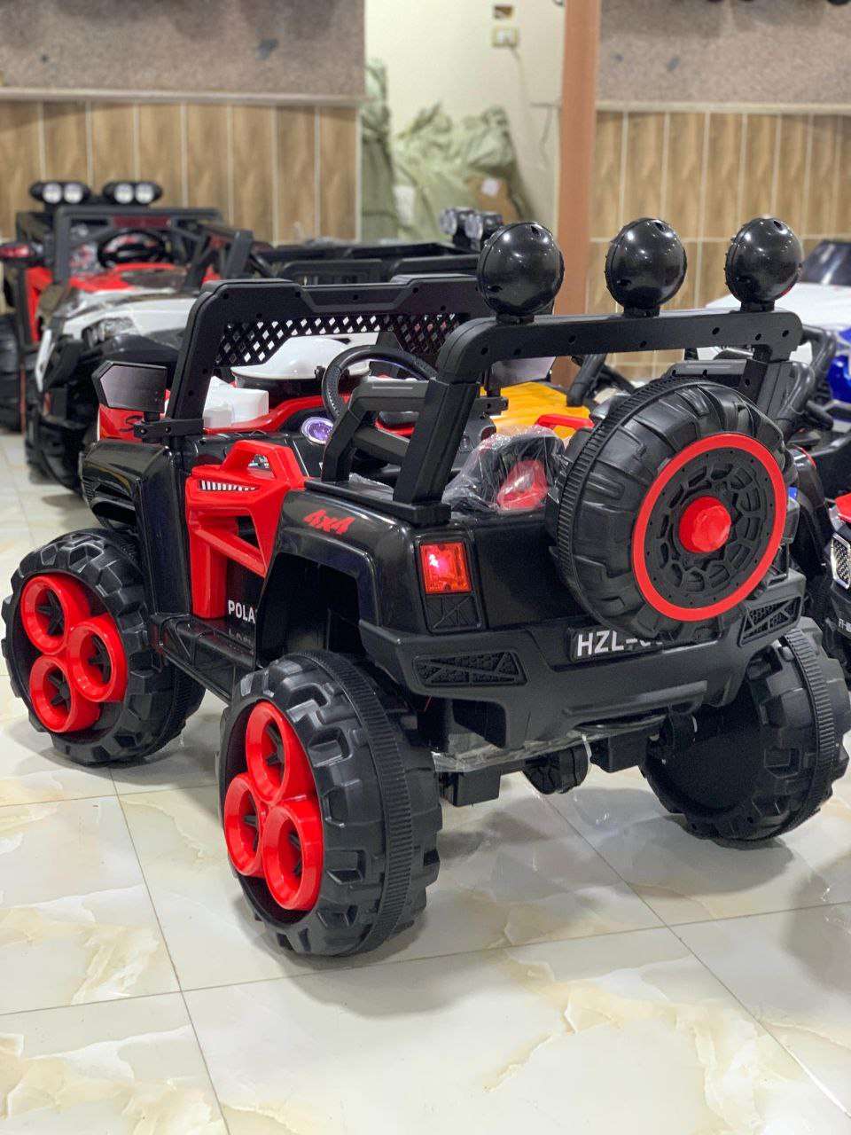 ⭕️ اكبر عربيه كهربا جيب الكبيرة فيها 6 ماتور و2بطاريه و ريموت وانوار ❤️ماتريال ممتازه جدا 🌹كاوتش مضغوط يتحمل اي حراره واي طرق ❤️فيها ريموت تحكم ابوي للتحكم في سرعة الطفل ووقف السياره ❤️شكل
