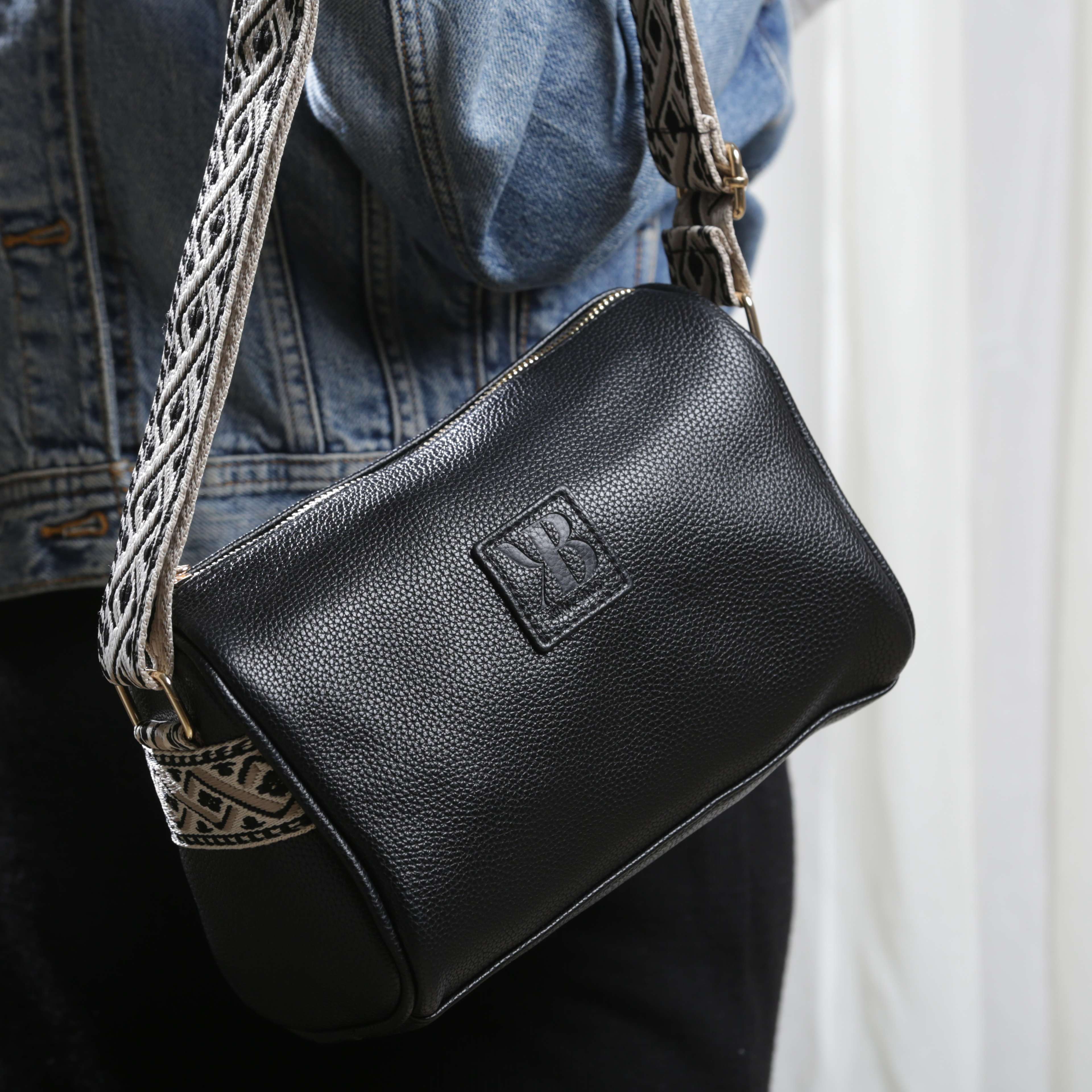 الشنطة دي هتكون رفيقتك المثالية لكل خروجاتك! مصنوعة من جلد إيطالي مستورد عشان تديكي شياكة وفخامة في نفس الوقت. كمان فيها سوستة معدن أصلية قوية وسهلة الاستخدام. تصميمها عملي وحزامها فيه تطريز شيك بيضيف