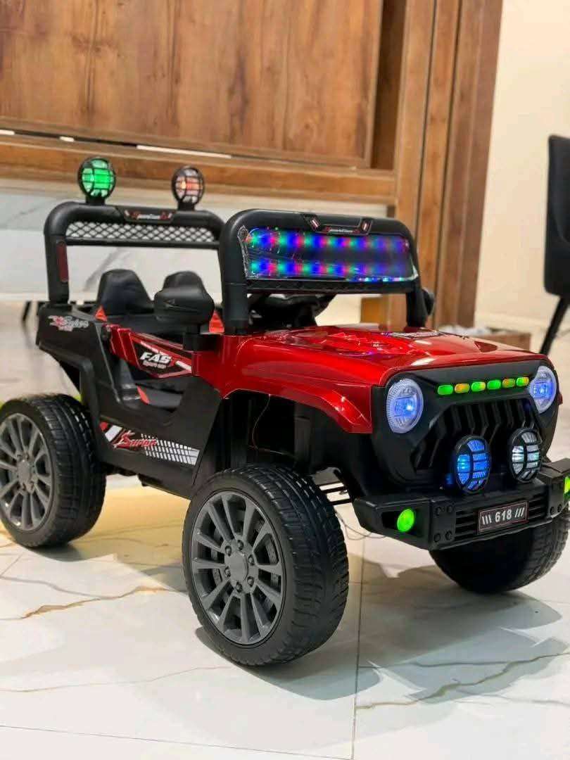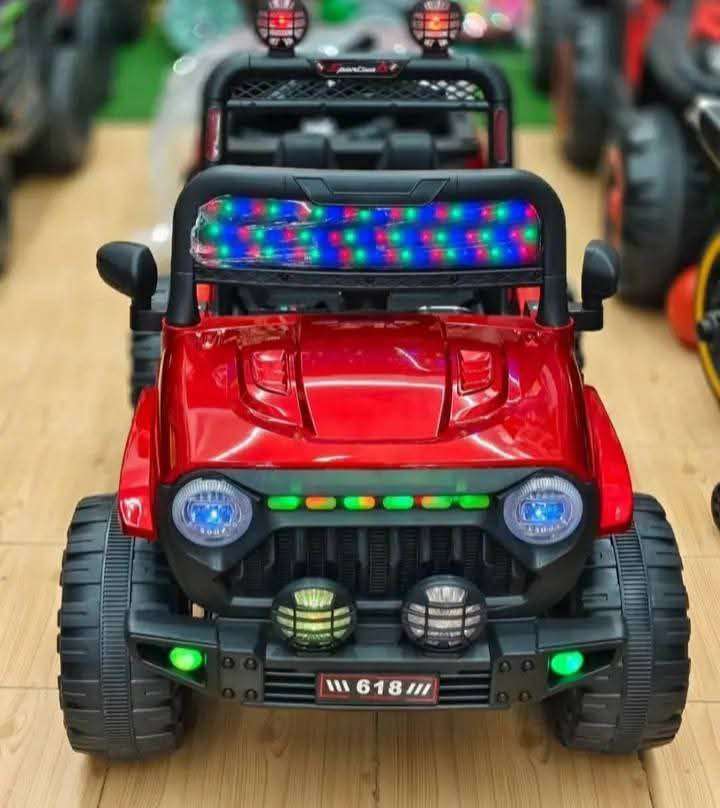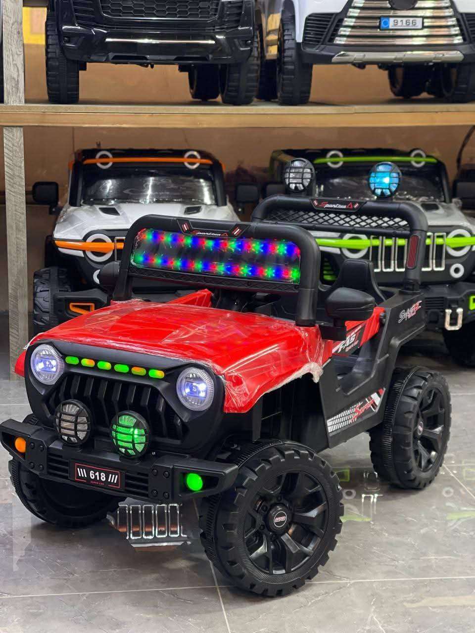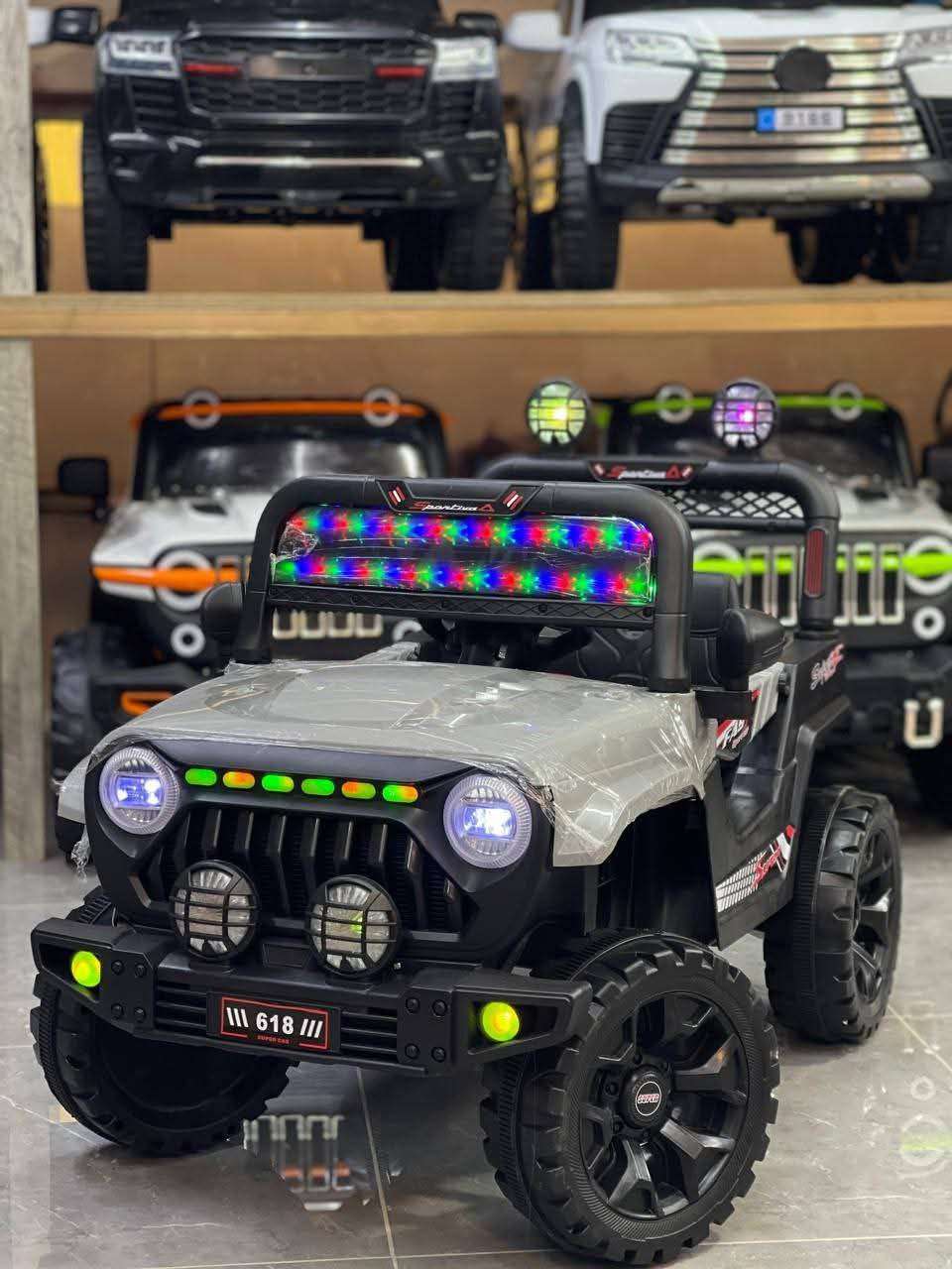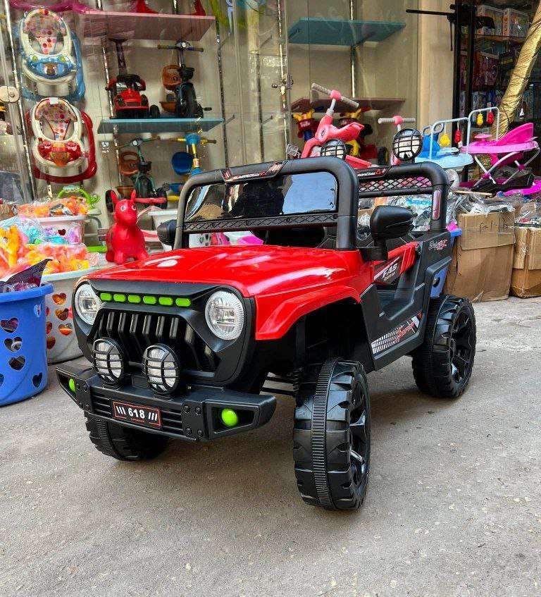 💢 السياره الجيب المضيئه 🤩 ✅ عربية كل حاجه فيها بتنور حرفيا 😂 ( بربريز مضئ _ اكصدام مضئ _ شبكه امامية مضيئه _ كشافات مضيئه ) ✅ فوانيس ليد اماميه وخلفيه قويه ✅ تحمل طفل حتي 7 او 8 سنوات ✅ عر