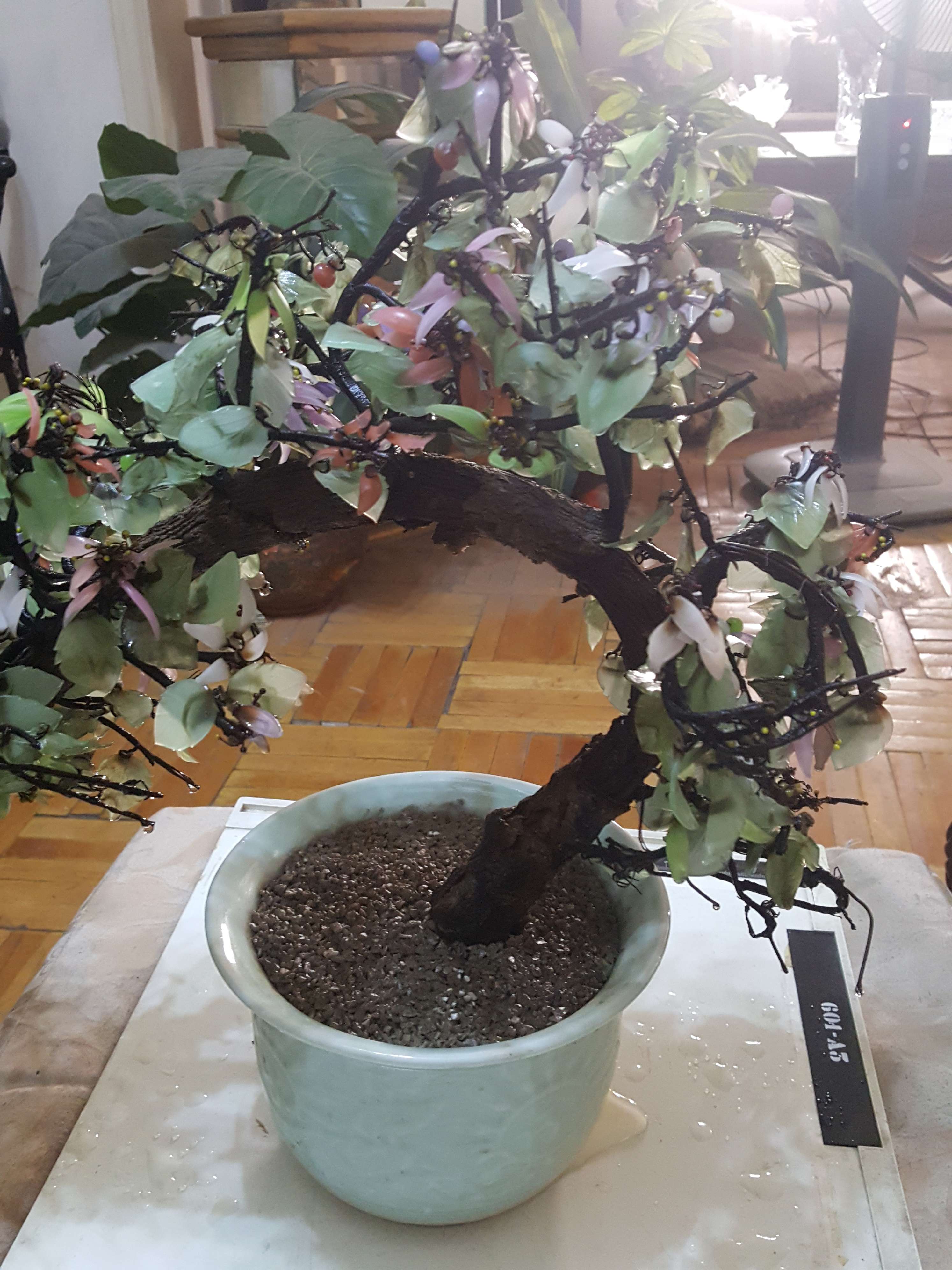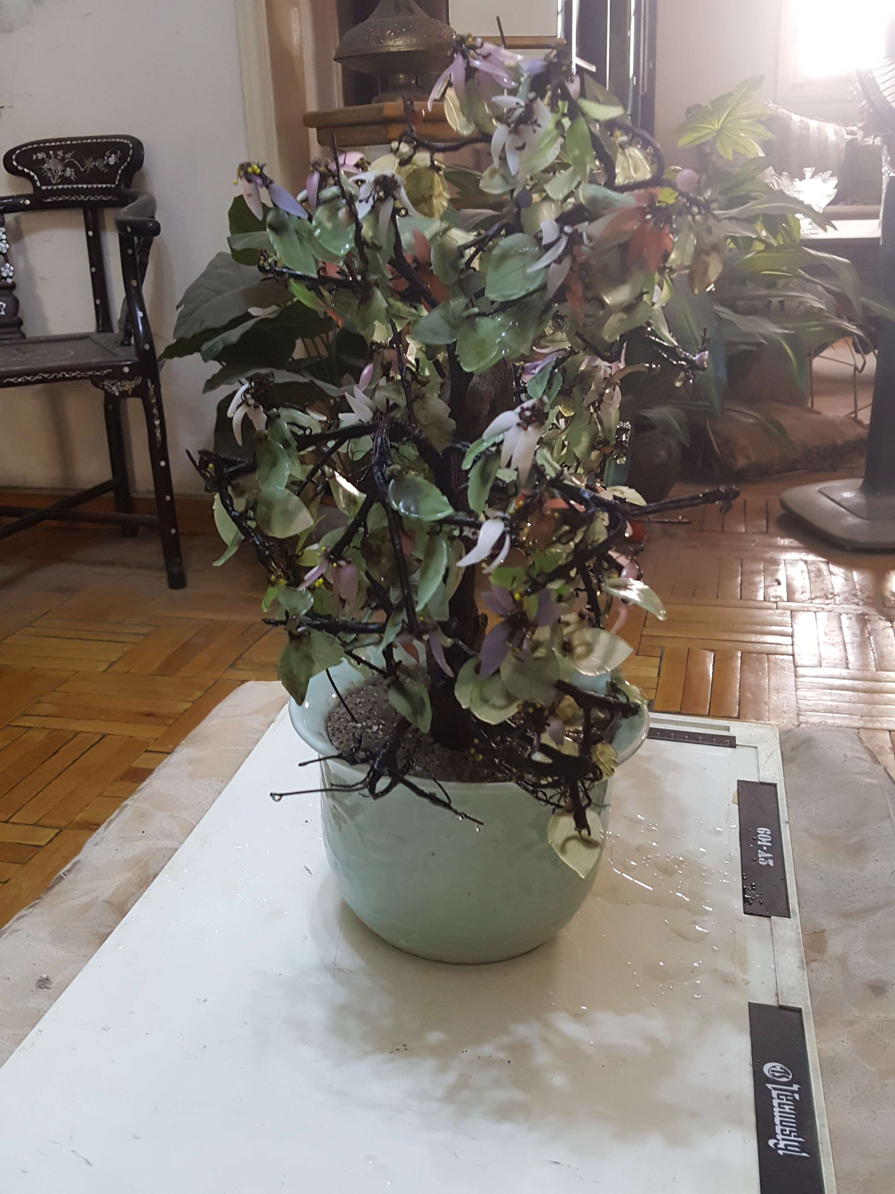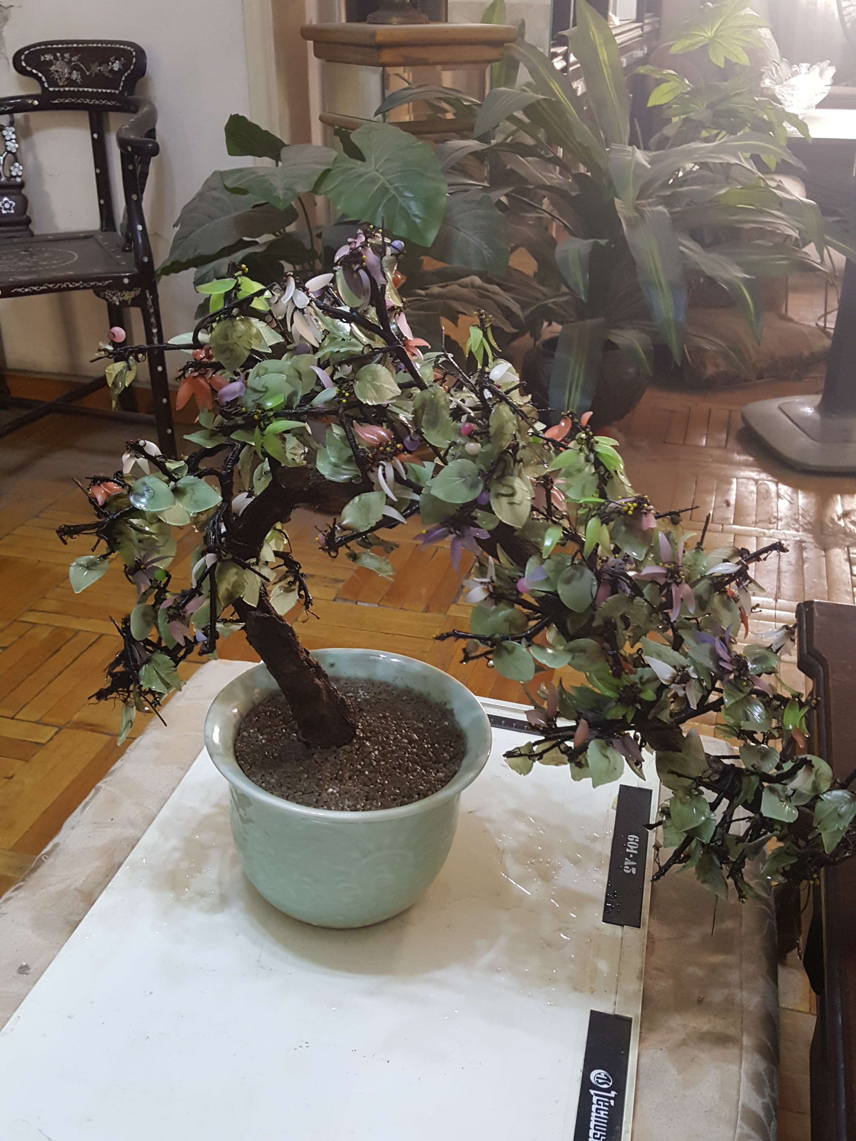 شجرة بونساي آسيوية عتيقة من اليشم الطبيعي و أزهار من احجار شبه كريمه