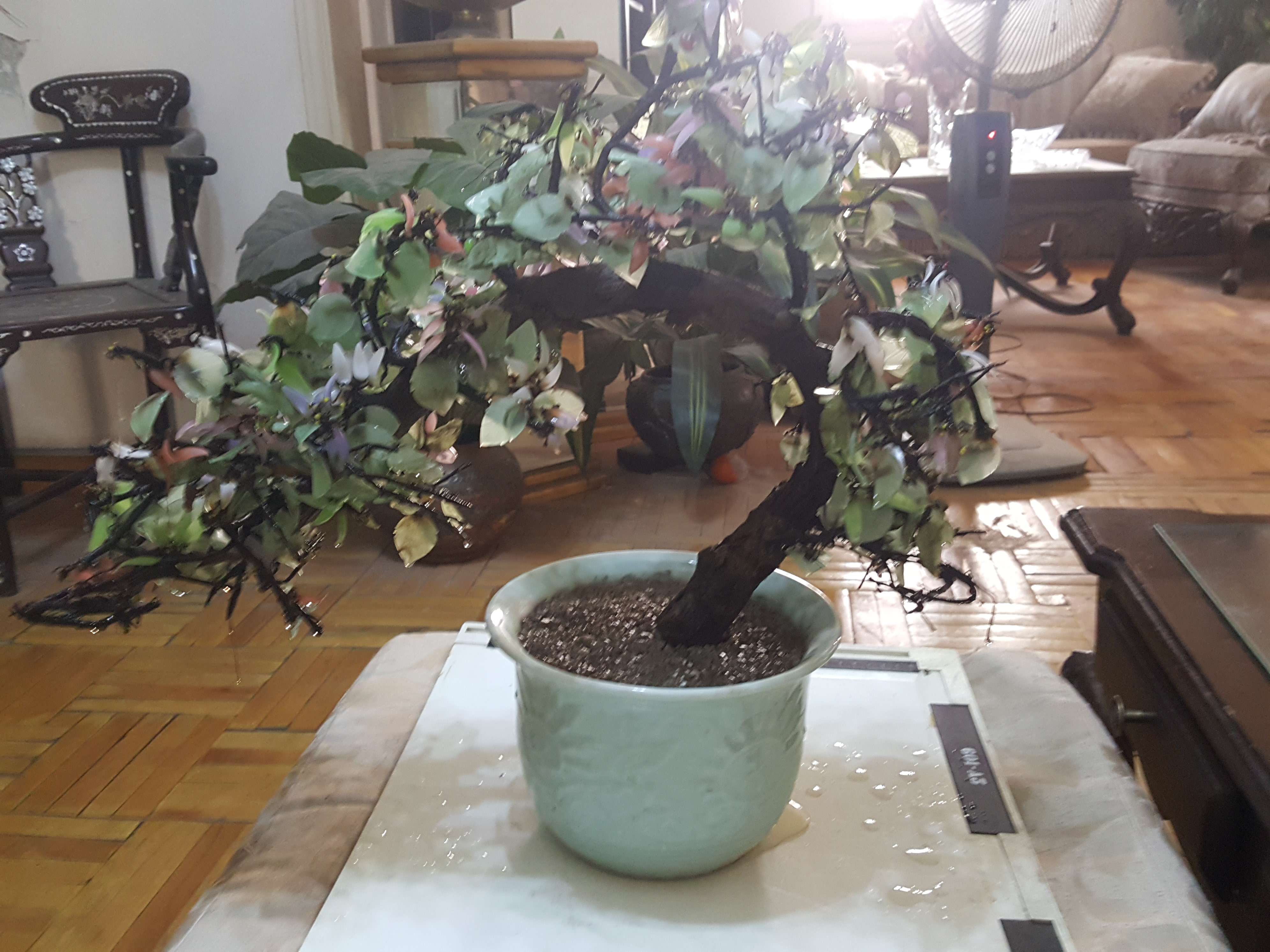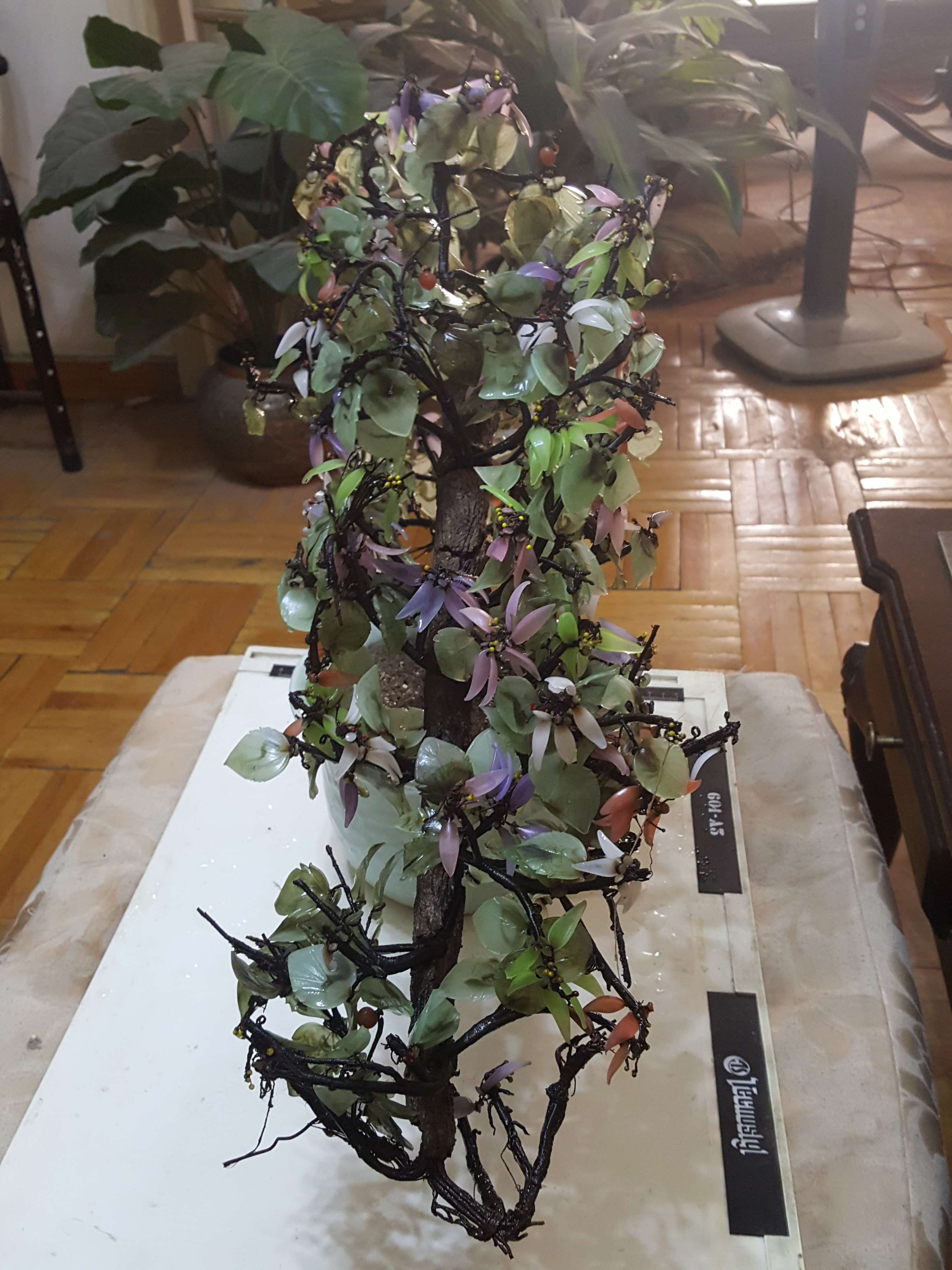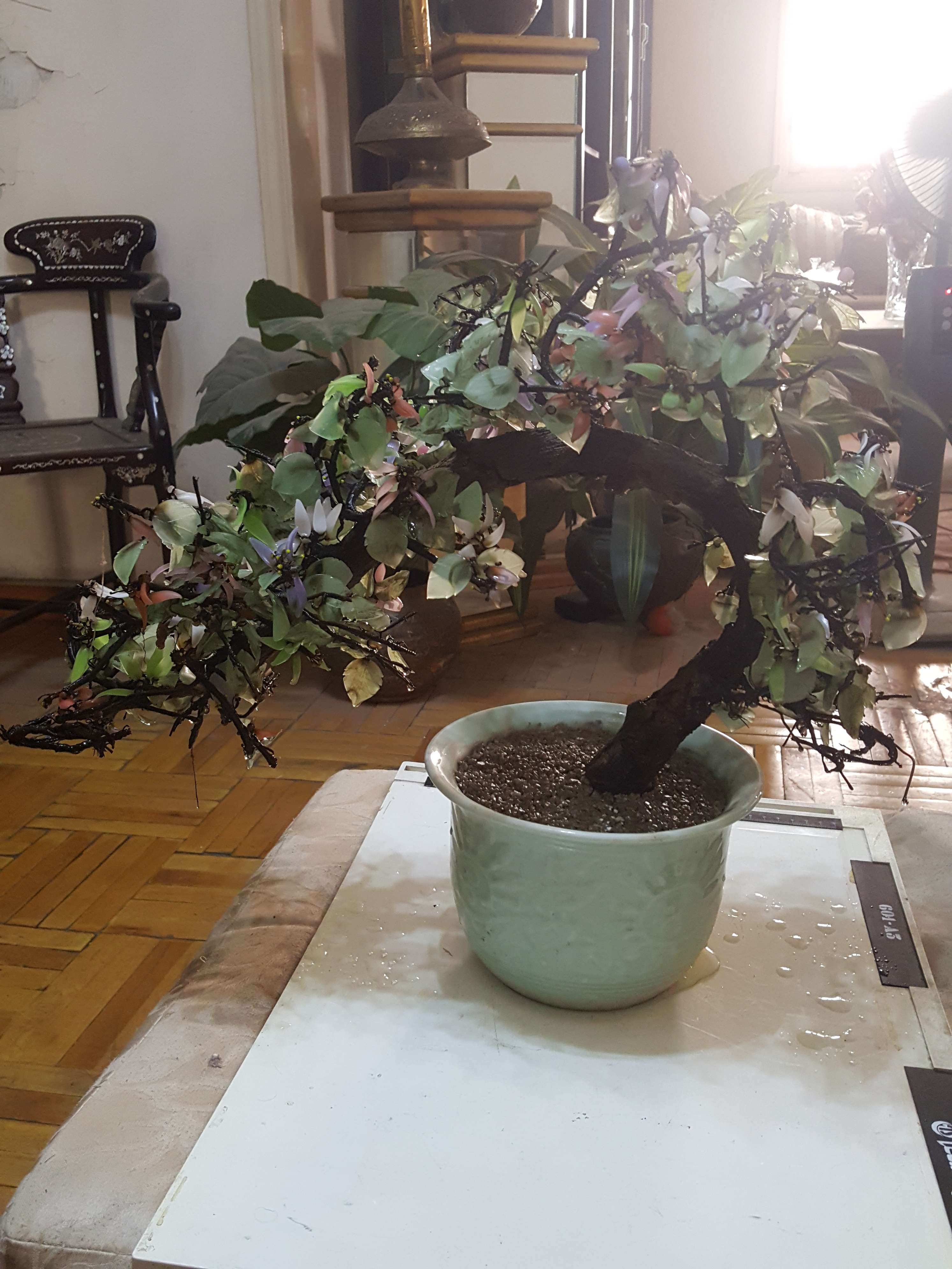 شجرة بونساي آسيوية عتيقة من اليشم الطبيعي و أزهار من احجار شبه كريمه
