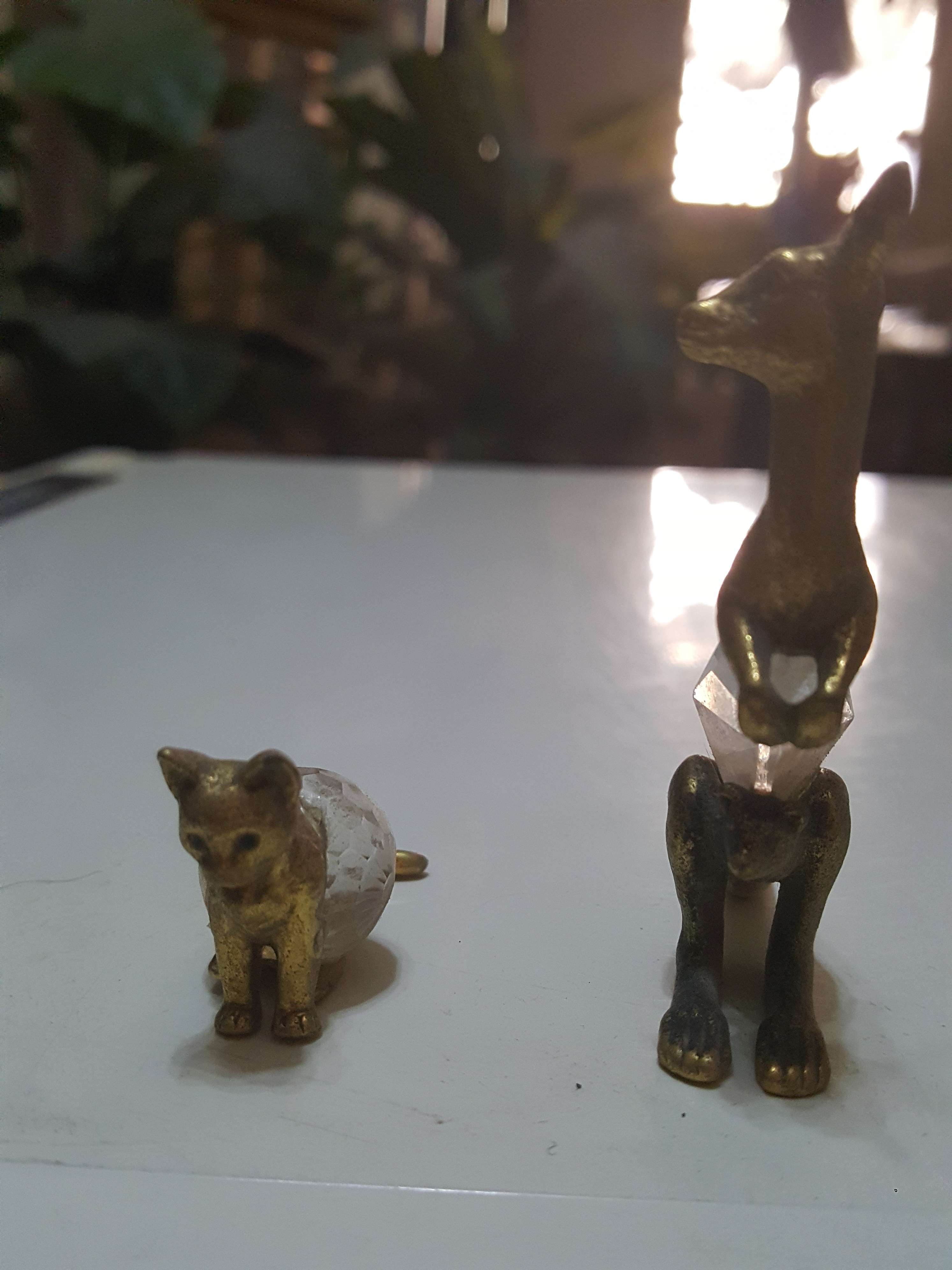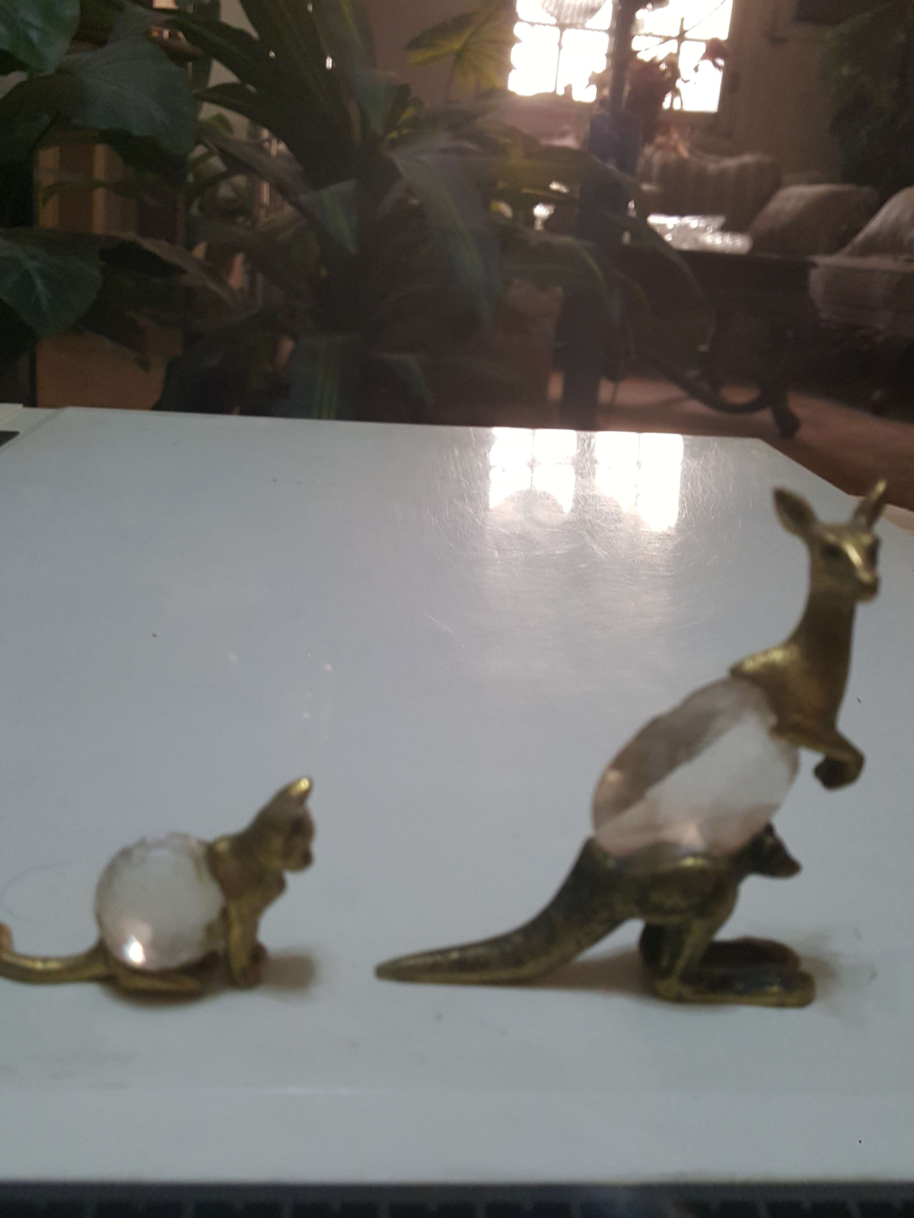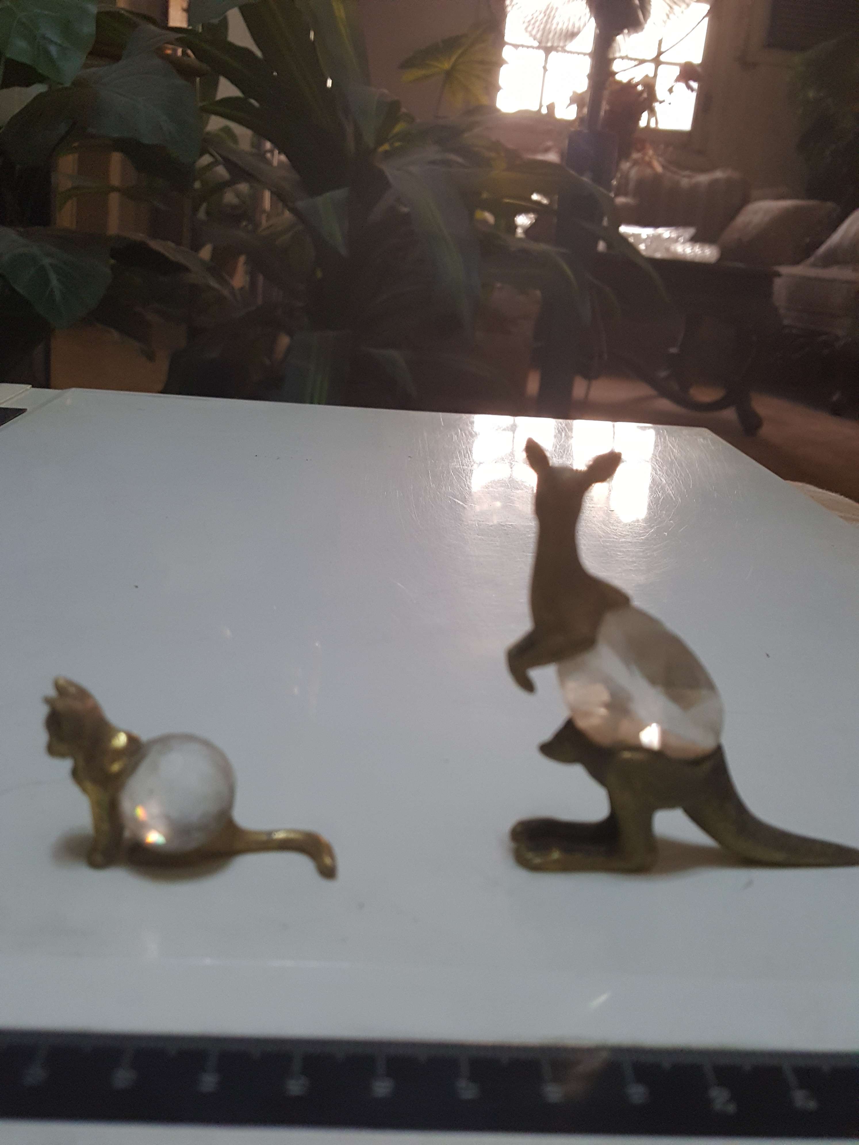 *تمثال كنغر وتمثال قطة Lencia Star النمساوية (إصدار 1990)، من الكريستال والذهب عيار 22 قيراط.* - التمثال الأول: كنغر جوى ارتفاع 7 سم، صناعة لينسيا أصلية (كود 66047). - التمثال الثاني: قطة كريستالية