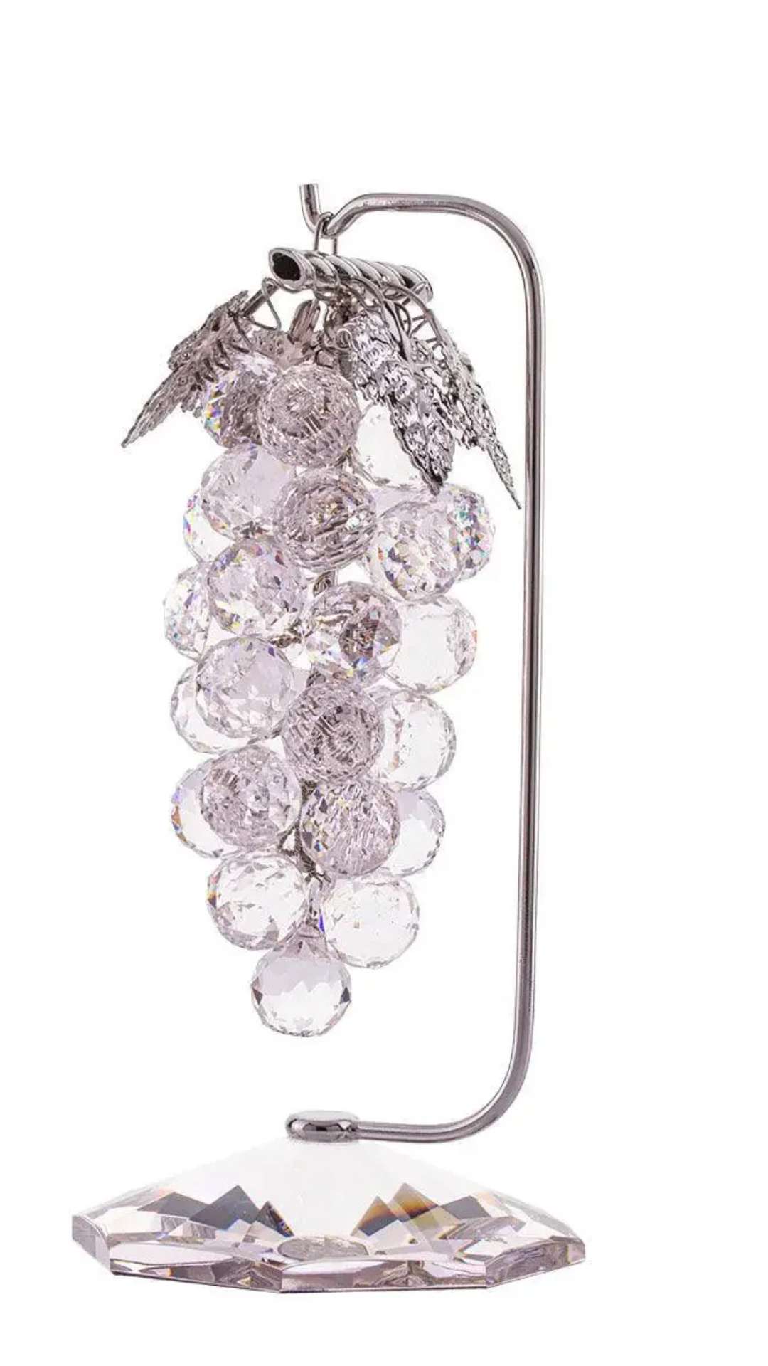 عنقود العنب كريستال عصفور على حامل من الكريستال النقي المطلي بالفضة