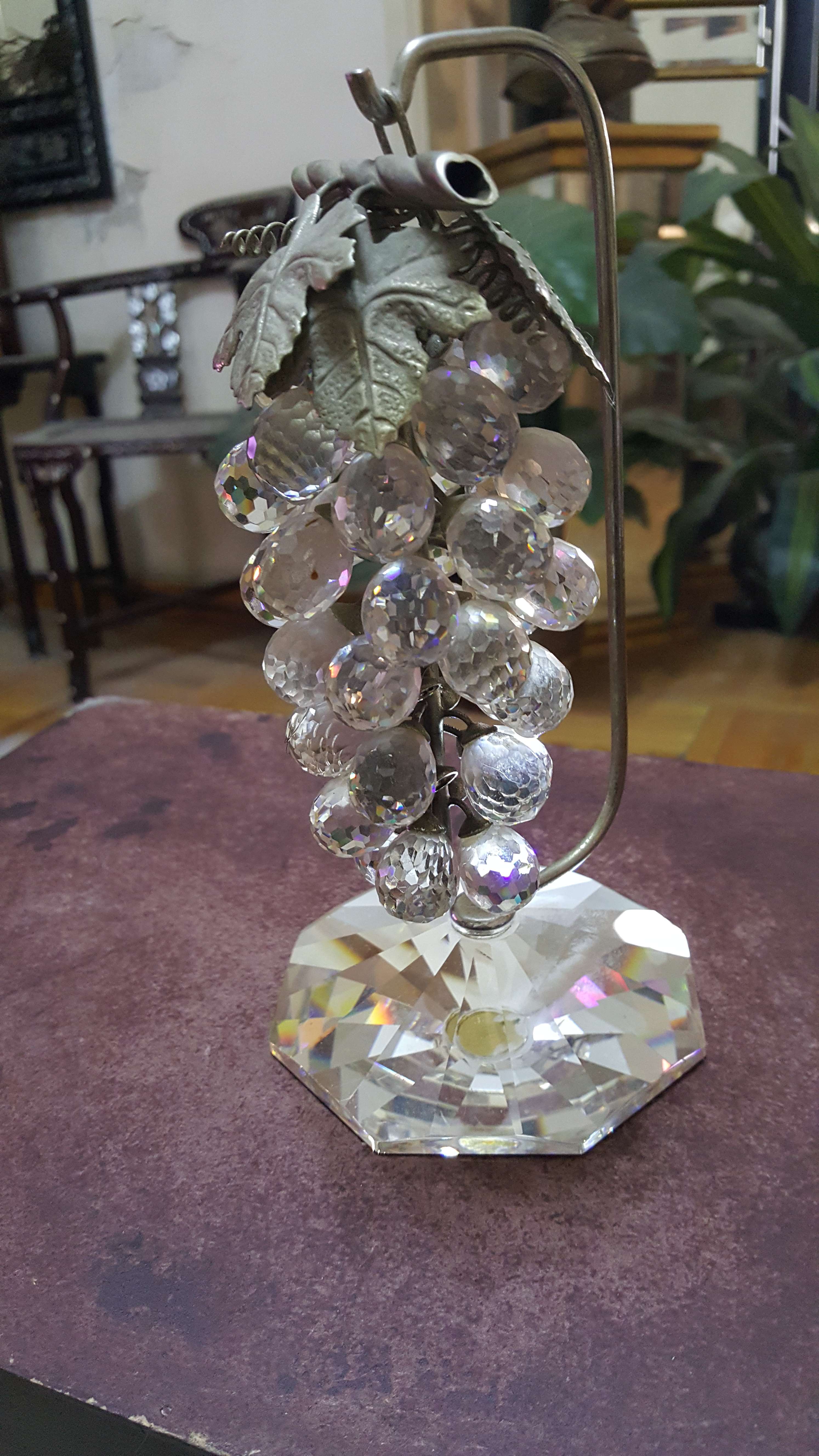 الرئيسيةعنقود العنب كريستال عصفور على حامل من الكريستال النقي المطلي بالفضة