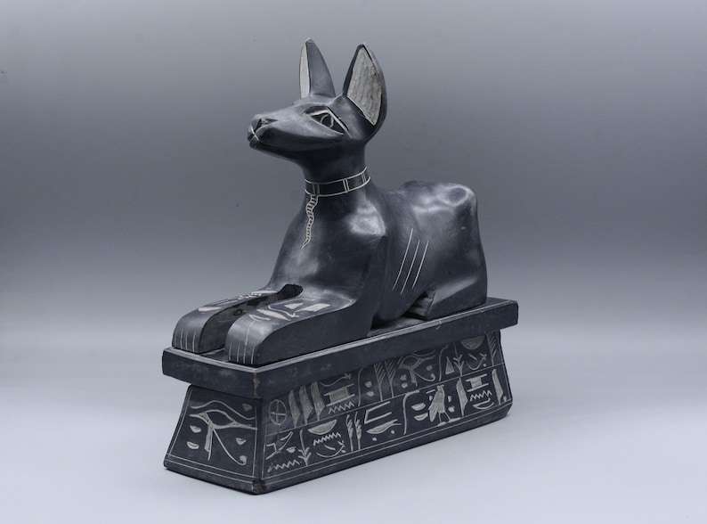* تمثال أنوبيس الفرعوني الأصلي – منحوت يدويا من حجر البازلت الاسود المصري الطبيعي وهوه نفس نوع الحجر الذي استخدمه المصريون القدماء في نحت تماثيلهم . * تمثال نادر للإله المصري القديم أنوبيس ابن آوى ،