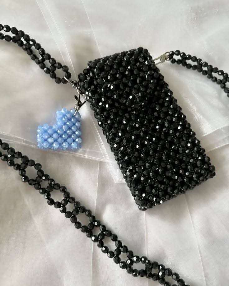 شنطة كروس خرز كريستال للموبايل اللون حسب الطلب