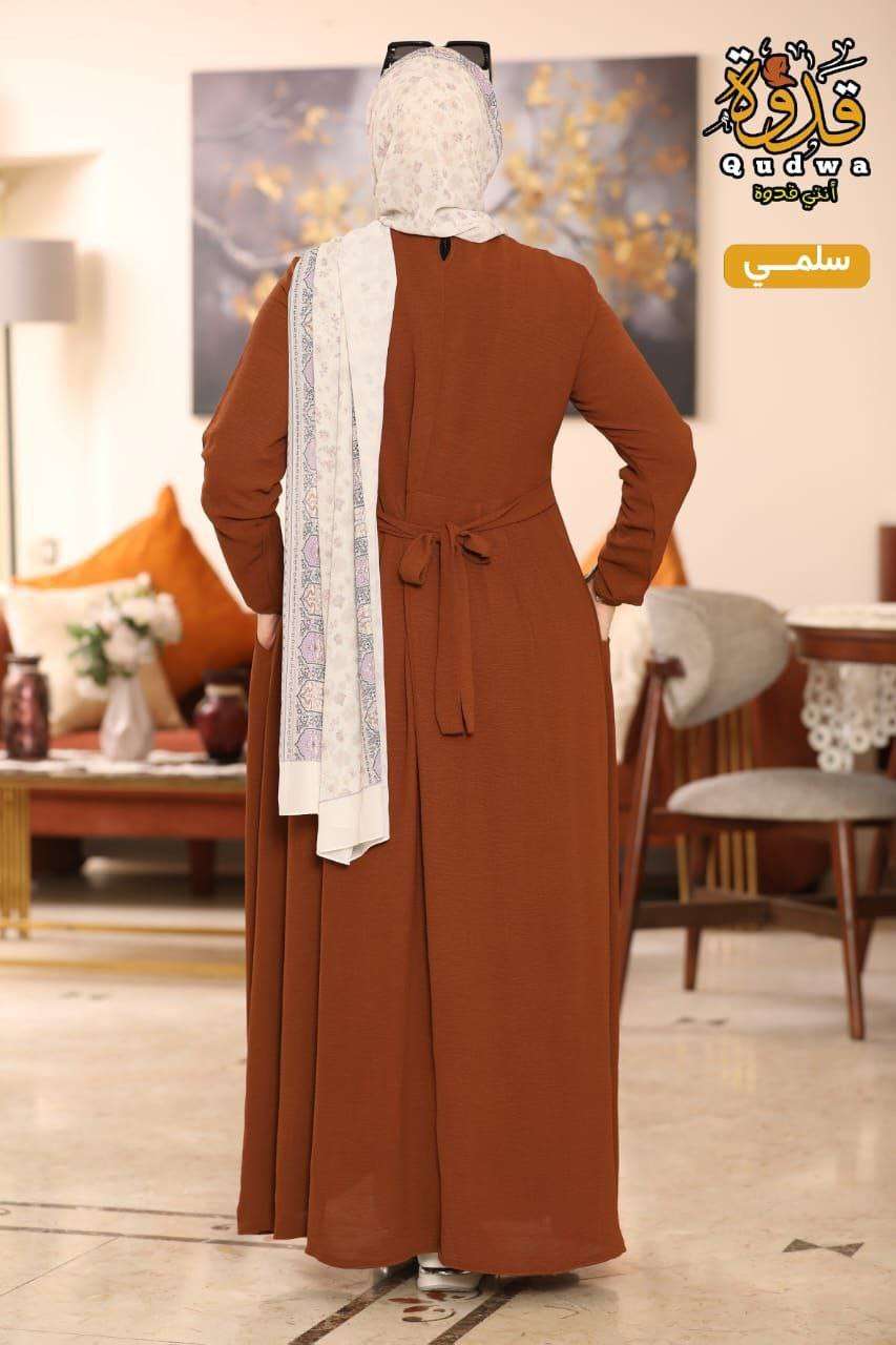 ✨ جديد من براند قدوة ✨ موديل: سلمي ❤️🔥 خامة : Cy عالي الجودة 🧵 مصمم بكسر من عند الوسط مزوّد بحزام بيتربط من ورا مزود بجبين ❤️ مقاس : Free size 👌 السعر 💰 500) G