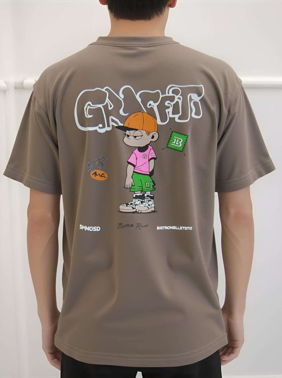 تيشيرت جرافيتي ستايل شبابي جريء لمحبي الجرافيتي والكارتون! لو بتدور على لوك ملفت ومليان طاقة، التيشيرت ده هو اختيارك المثالي! 🎨 تصميم أمامي وخلفي برسمة كارتونية مميزة وجرافيك مستوحى من عالم ال