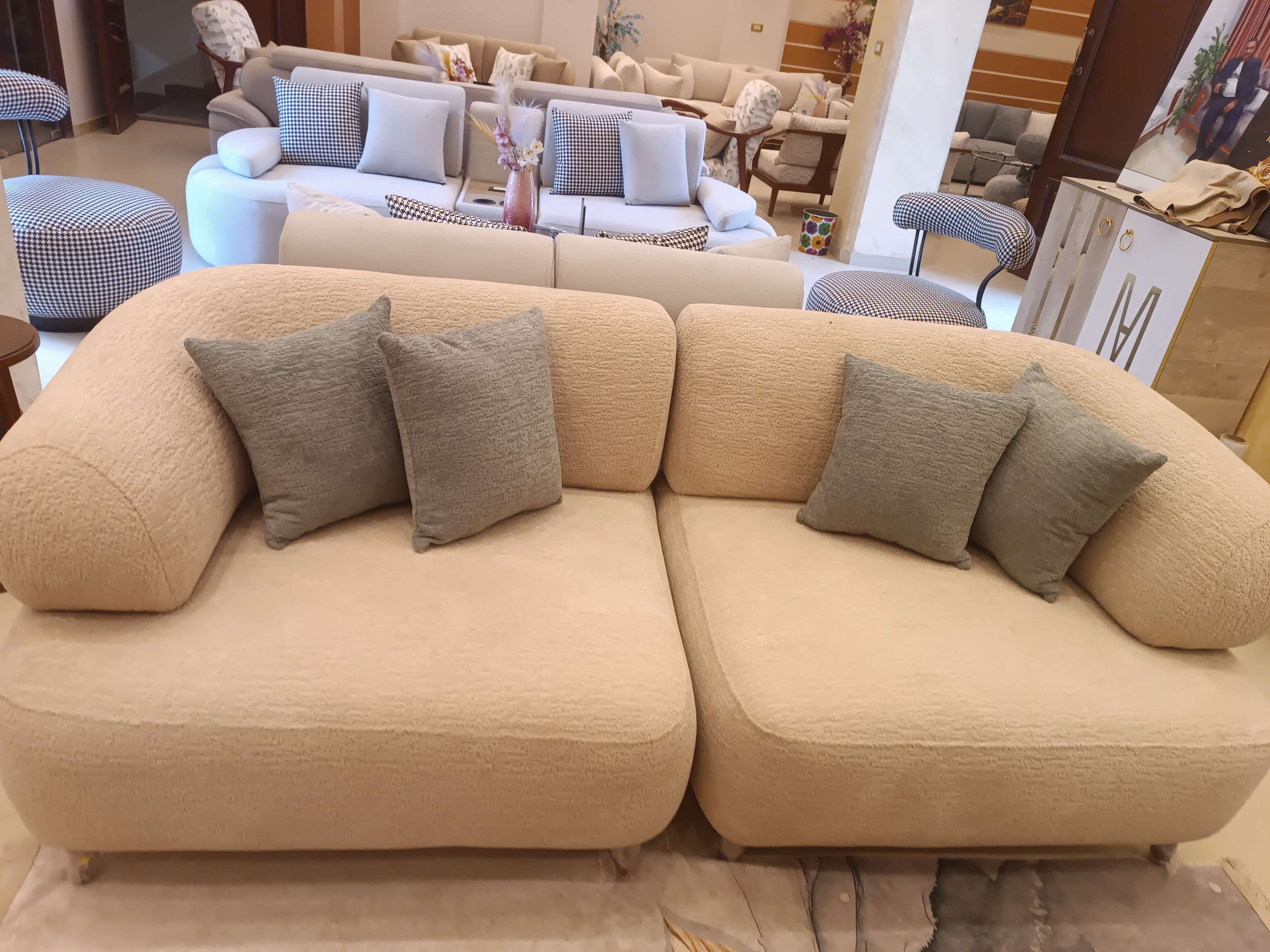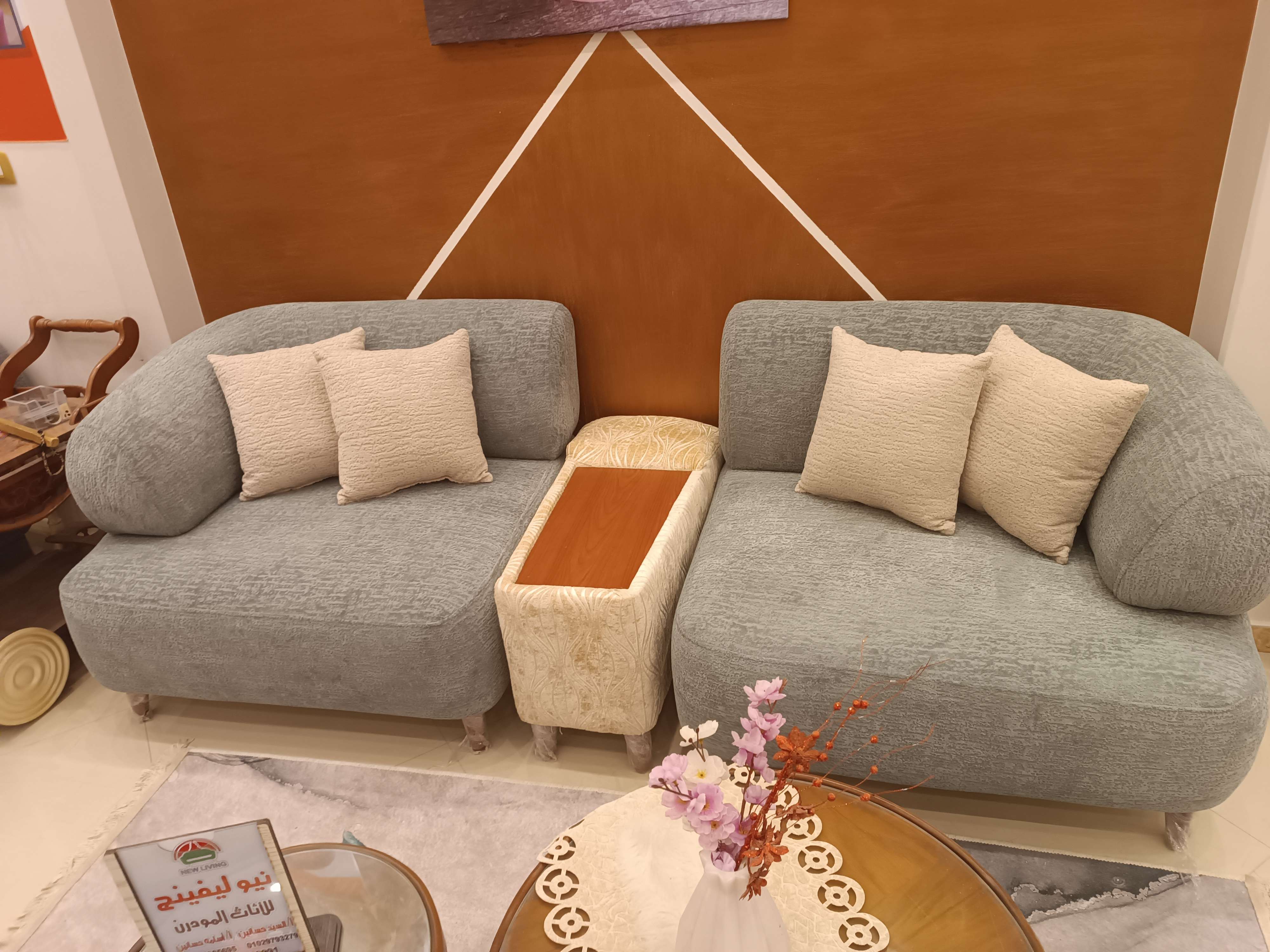 الطقم مكون من 2كنبه واحدة كبيرة مكونه من 3 قطع و كنبة صغيرة مكونه من قطعتين و 2فتية و ترابيزة قطعتين هدية