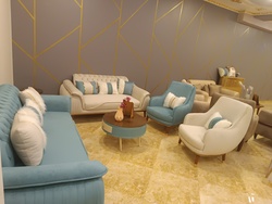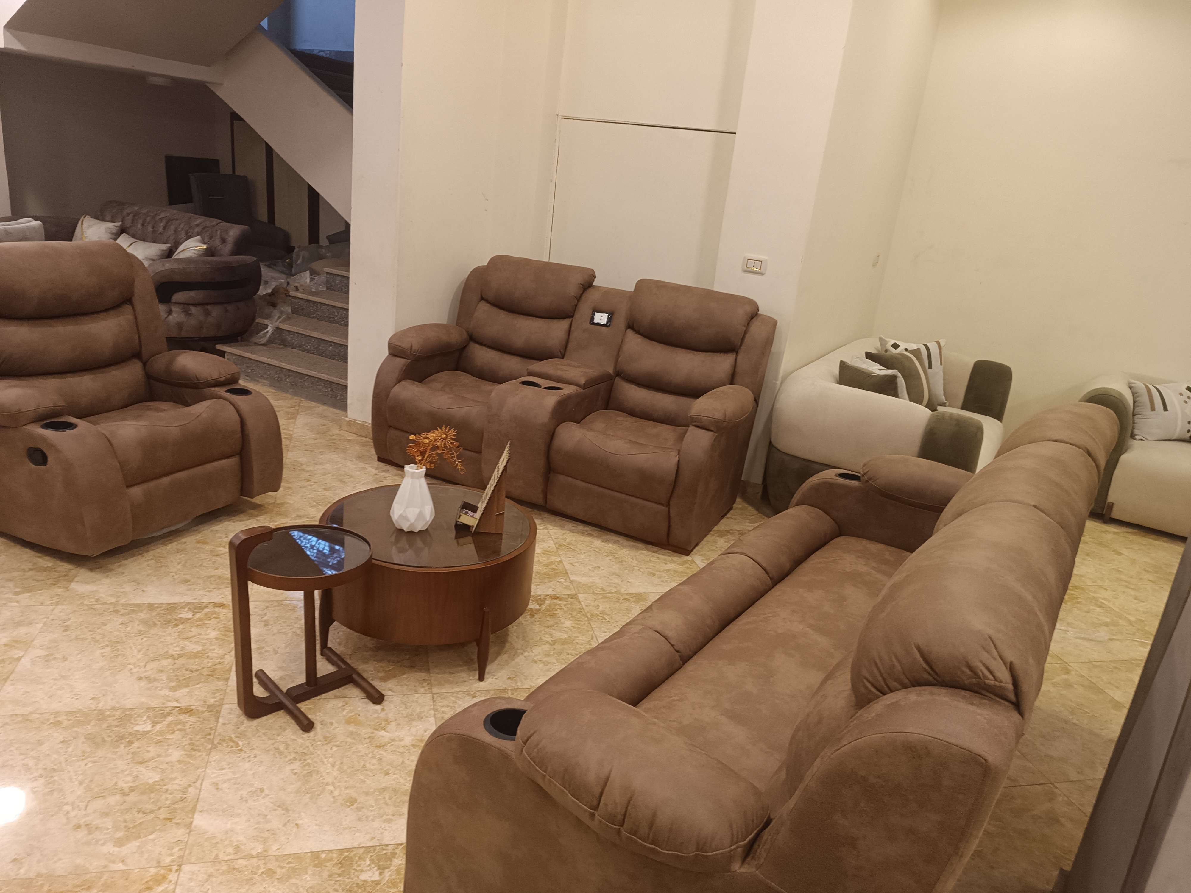 الطقم مكون من 2كنبه واحدة كبيرة بتفتح سرير و واحدة صغيرة فيها وحده تخزين وحامل أكواب و usp و فتيه مريح جداً بيفتح سرير