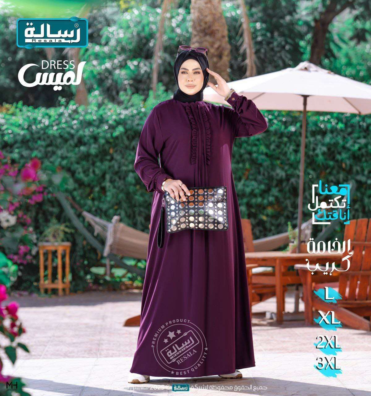 الجديد من براند رساله💞 موديل: لميس ♥️✨ ماتريال: كريب عالي الجودة 💯 مقاس : متوفر 4 مقاسات L , xL , 2xL , 3xL ✨ المقاس بنصف محيط الصدر: L : 52CM 💥 XL : 54CM 💥 2xl : 56CM 💥