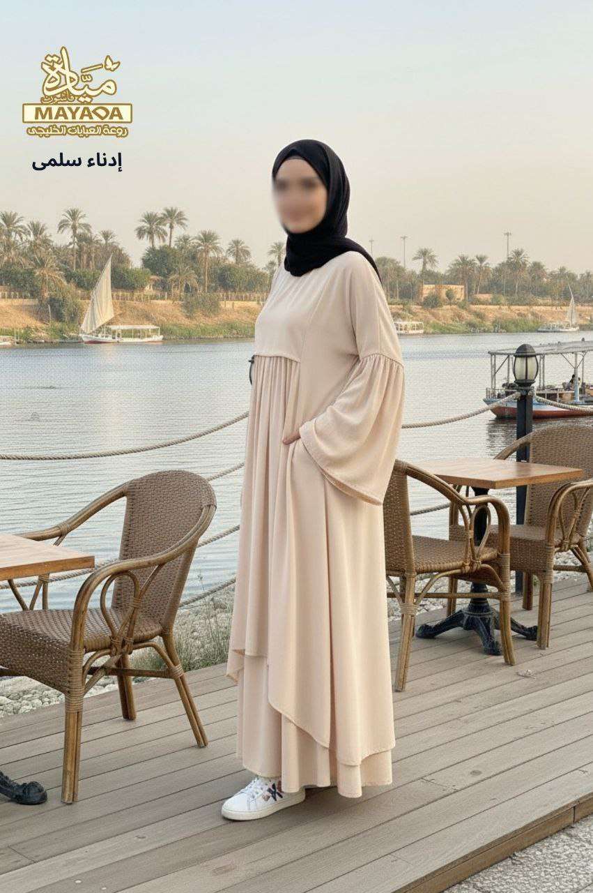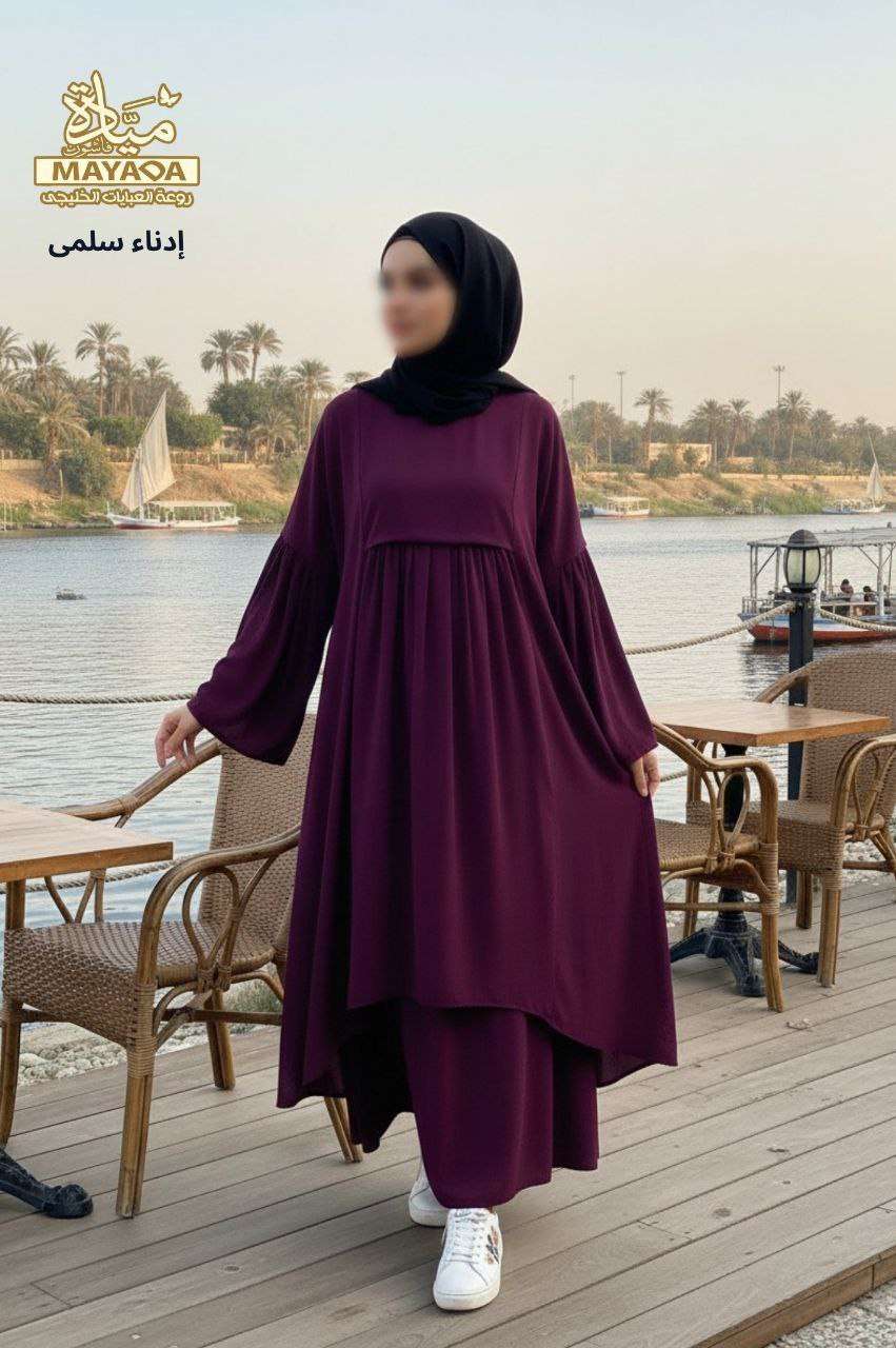 جديد من براند  " مياده  فاشون " ♥️✨ موديل  سلمى❤️‍🔥 طقم مكون من قطعتين إدناء . جيبة ماتريال : رويال كريب مقاس : متاح بمقاسين 1 , 2 المقاسات المتاحه بنصف محيط الصدر  : 1 : 62 CM