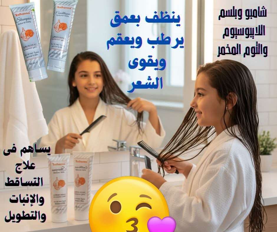 صحة وجمال شعرك بتبدأ من الشامبو والبلسم المناسب 💪💪🥳🥳 أقوى والطف شامبو وبلسم ممكن تستخدميه لترطيب وتعقيم وتعطير الشعر 💃💃💃💃 🧄مجموعة شامبو وبلسم ريحانة بخلاصة اللايبوسيوم كافيين والثوم المخمر