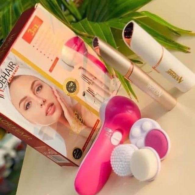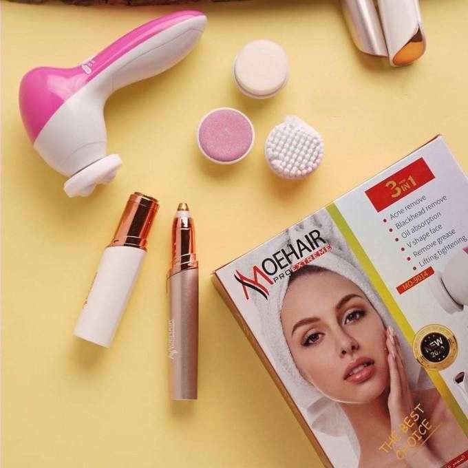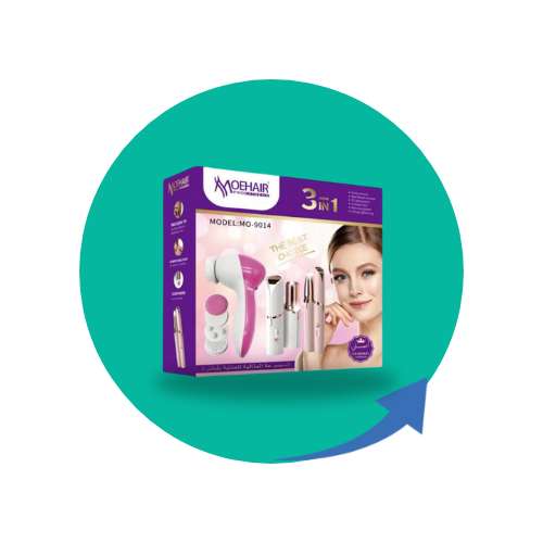 مكونات المجموعة: جهاز تنظيف كهربائي للبشرة مزوّد برؤوس متعددة لتنظيف المسام بعمق، تقشير لطيف، وتجديد خلايا البشرة. آلة إزالة شعر الوجه (فلوليس) تصميم أنيق يشبه الروج – آمنة على البشرة، خالية من الألم،