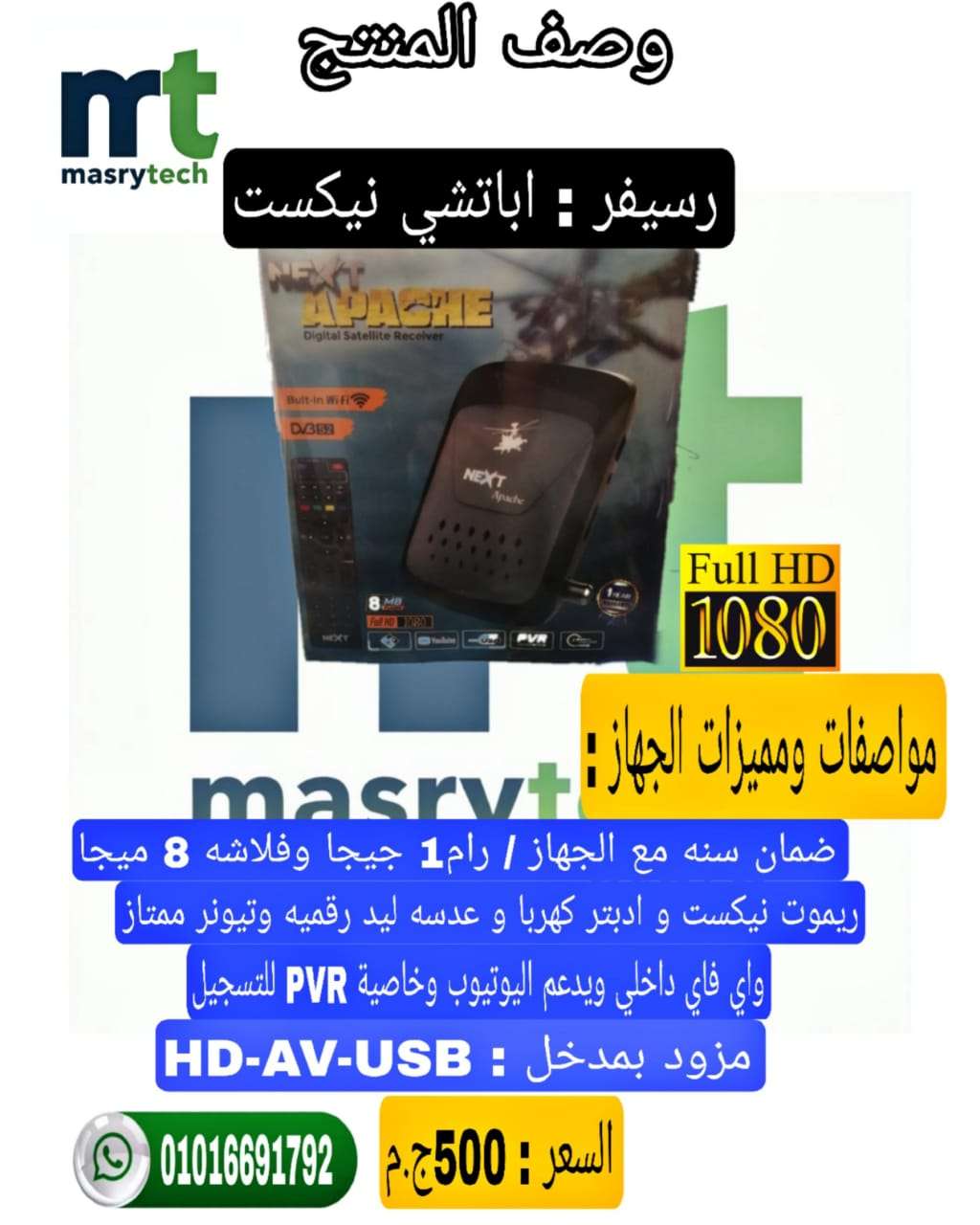 وصف المنتج الموديل: اباتشي نيكست (NEXT Apache) 🌟 جودة الصورة: Full HD 1080P 🎬 الضمان: ضمان سنة مع الجهاز ✅ الذاكرة: 1 جيجا رام / 8 ميجا فلاشة 💾 الريموت: ريموت نيكست 🎮 مزود بـ: ادبت