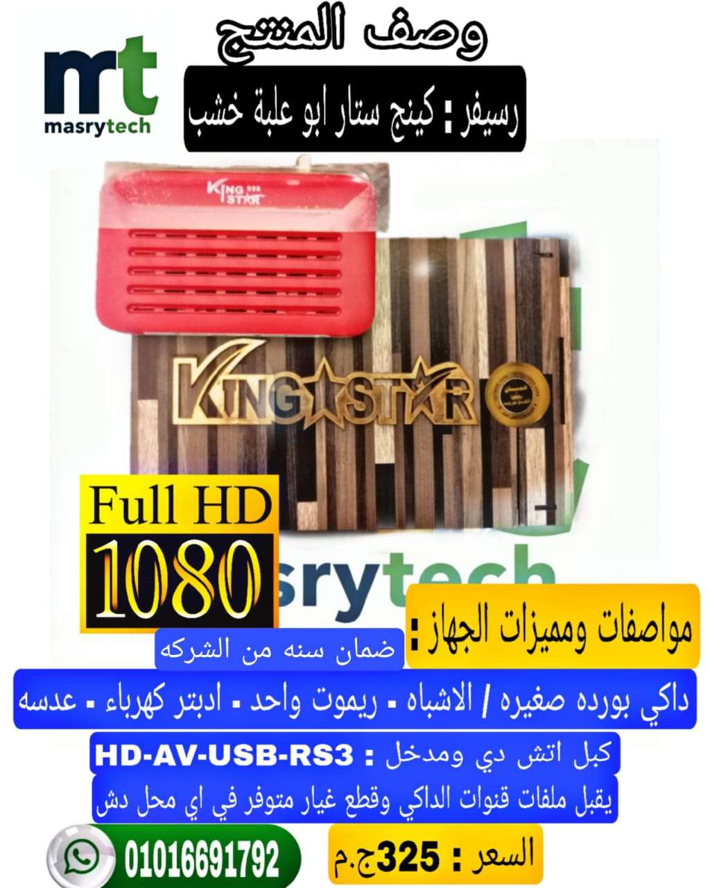 وصف المنتج رسيفر كينج ستار ابو علبة خشب - المواصفات: الموديل: كينج ستار ابو علبة خشب 👑 جودة الصورة: Full HD 1080P 🎬 الضمان: سنة من الشركة ✅ المعالج: داكي بورده صغيرة ⚙️ الريموت: ريمو