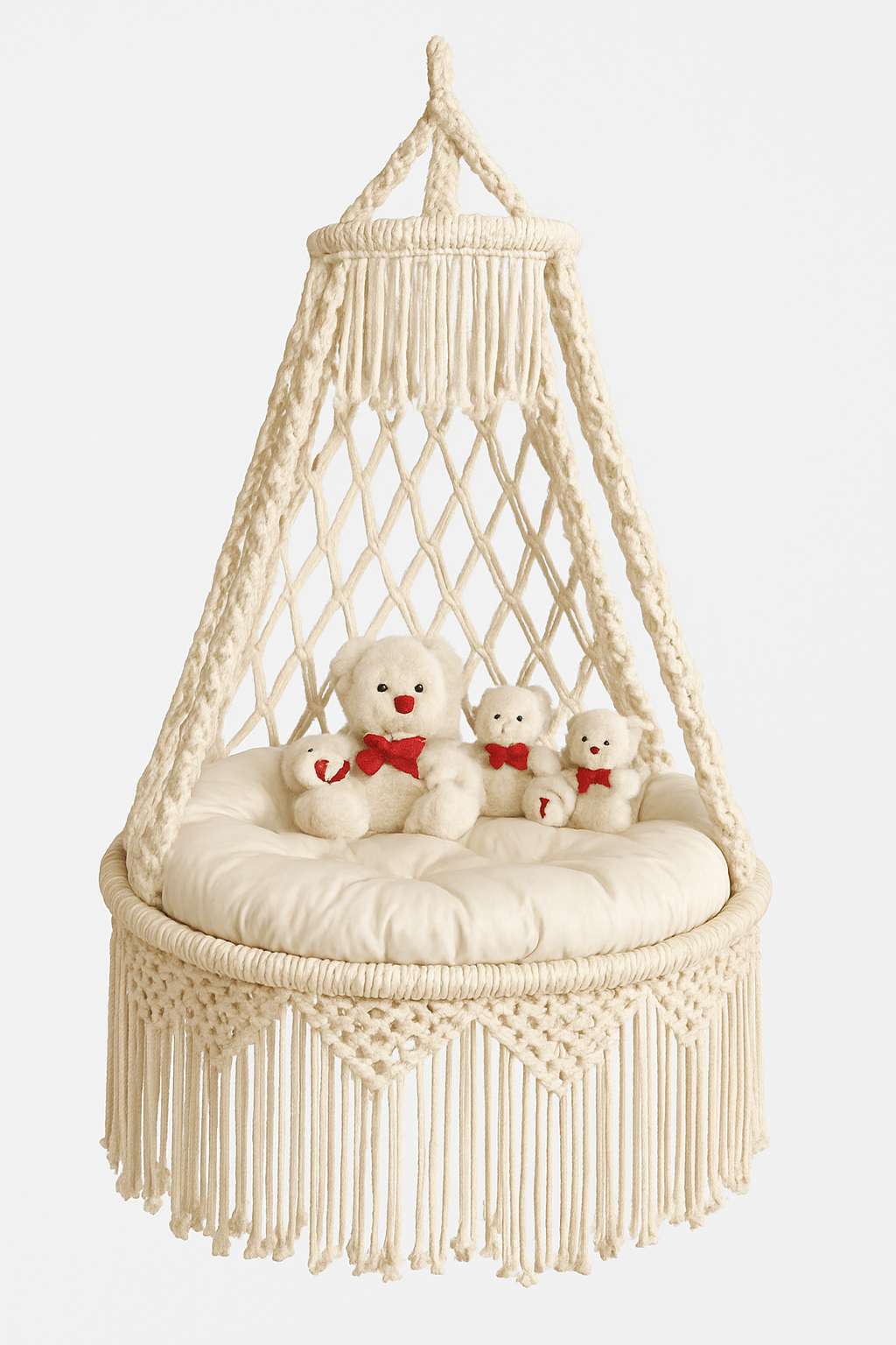 مرجيحة مكرمية عالية الجودة استمتع بأحلى لحظات الراحة والمرح مع مرجيحة مكرمية مصنوعة من خيوط القطن المكرمية ذات الجودة العالية، لضمان المتانة والراحة لأطفالك وعائلتك. المواصفات: - مصنوعة م