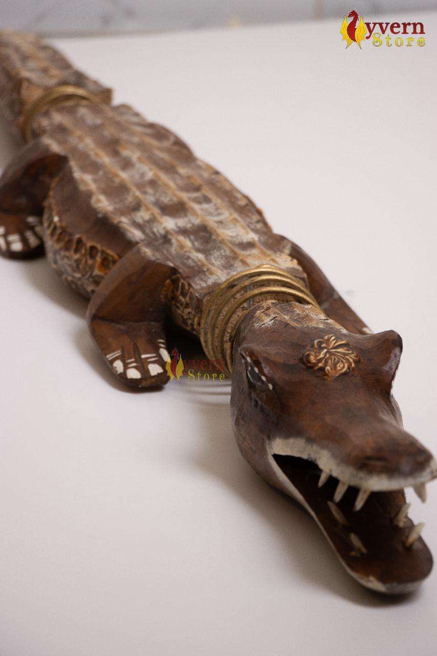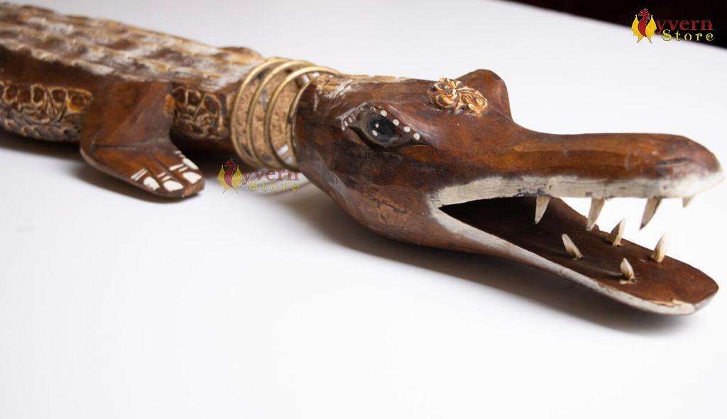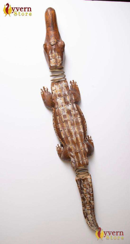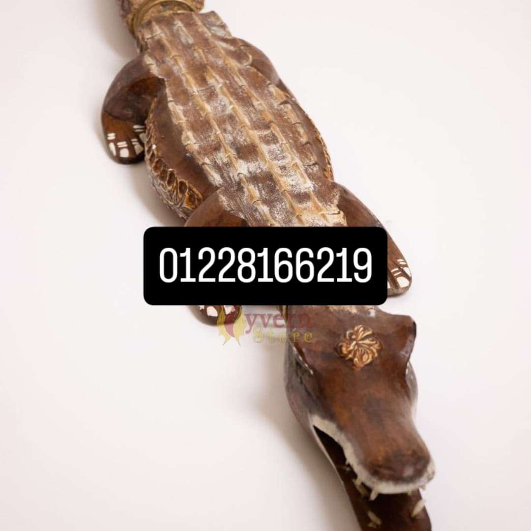 تمساح خشب من اندونيسيا شغل يدوي منحوت ومطعم بسوسته من الرقبة والذيل من خشب التك مقاس ٨٠سم قطعه خشبيه فنية رائعة