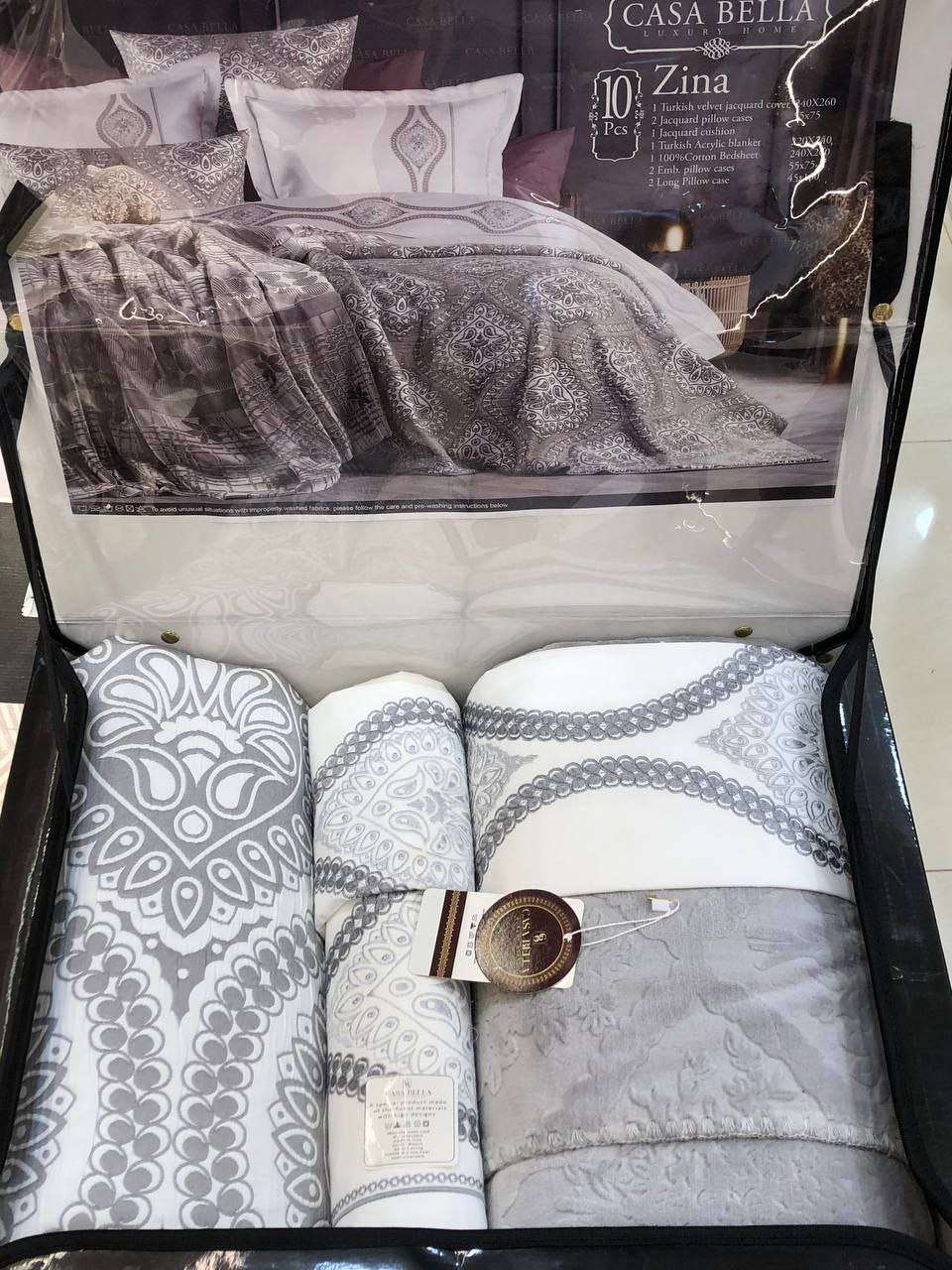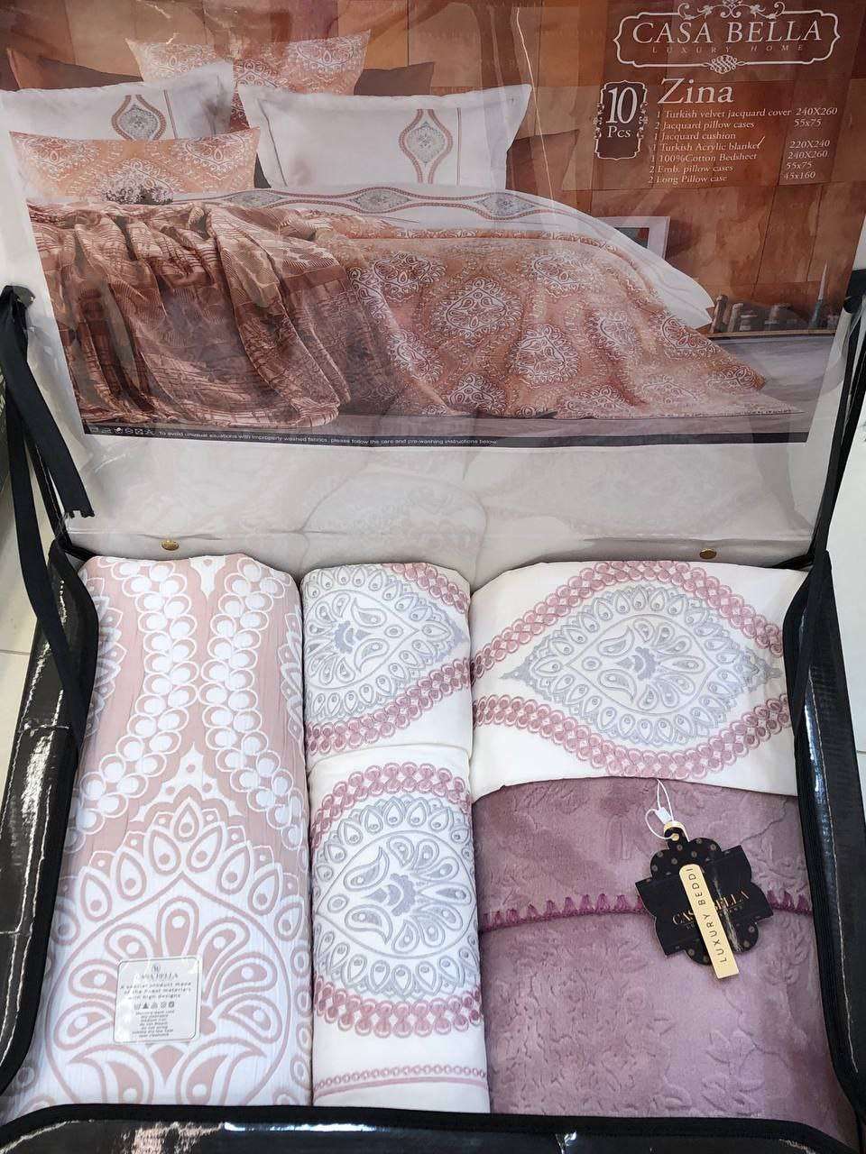 🌼 طقم كامل بطانية + كوفرتة + ملاية زينا كازابيلا قطن صافي 💯 ✖ 💯 10 قطع كبير بطانية اكريلك تركي 240x220 كوفرتة تركي مخمل جكار 260x240 ملاية قطن مطرز قطن 260x240 2 خدادية مطرز 75x55 2 خد